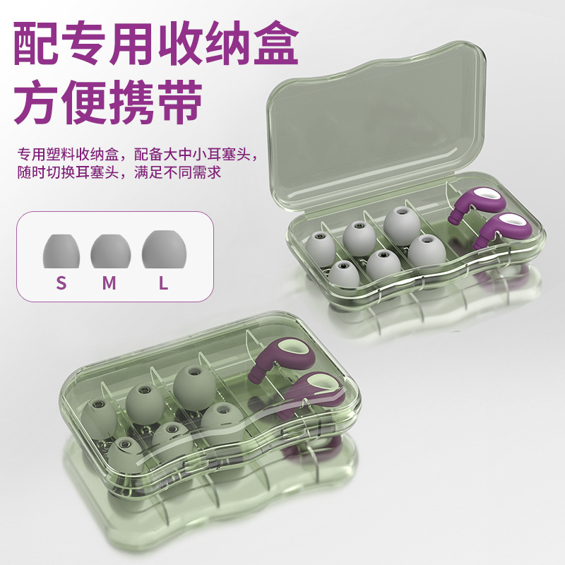 Packing: a pair of earplugs (with large, medium, and small size replacement heads) + a plastic storage box + a colorful box packaging (weight: 22 grams)