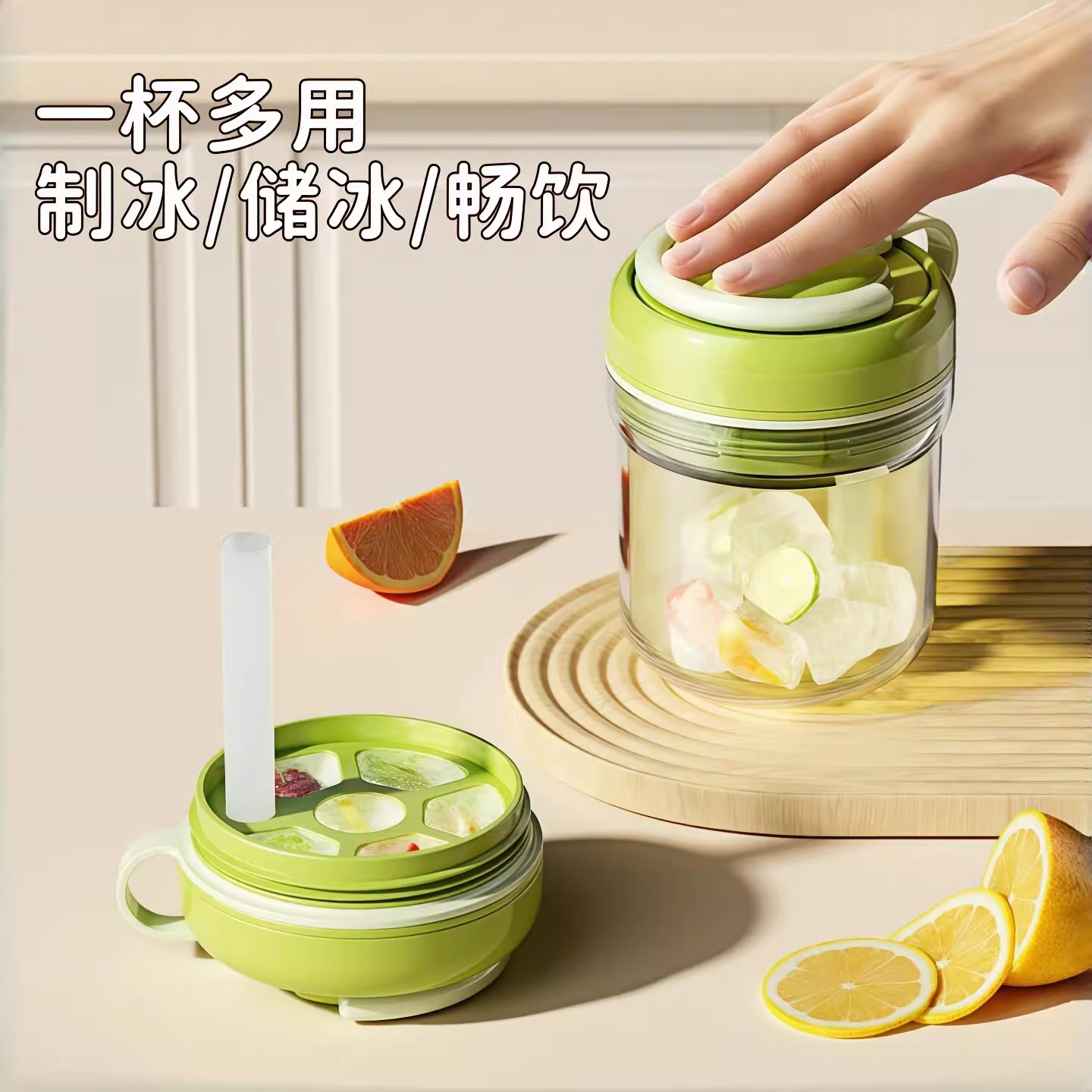 ice tray cup-beige, ice tray cup-green, ice tray cup