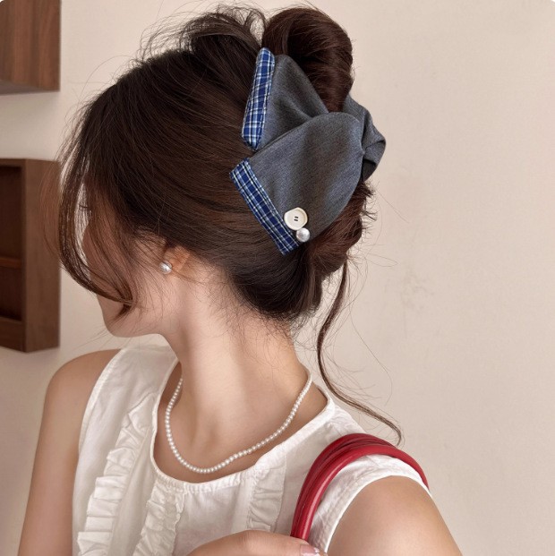 navy blue bow denim triangle grip about 13cm
