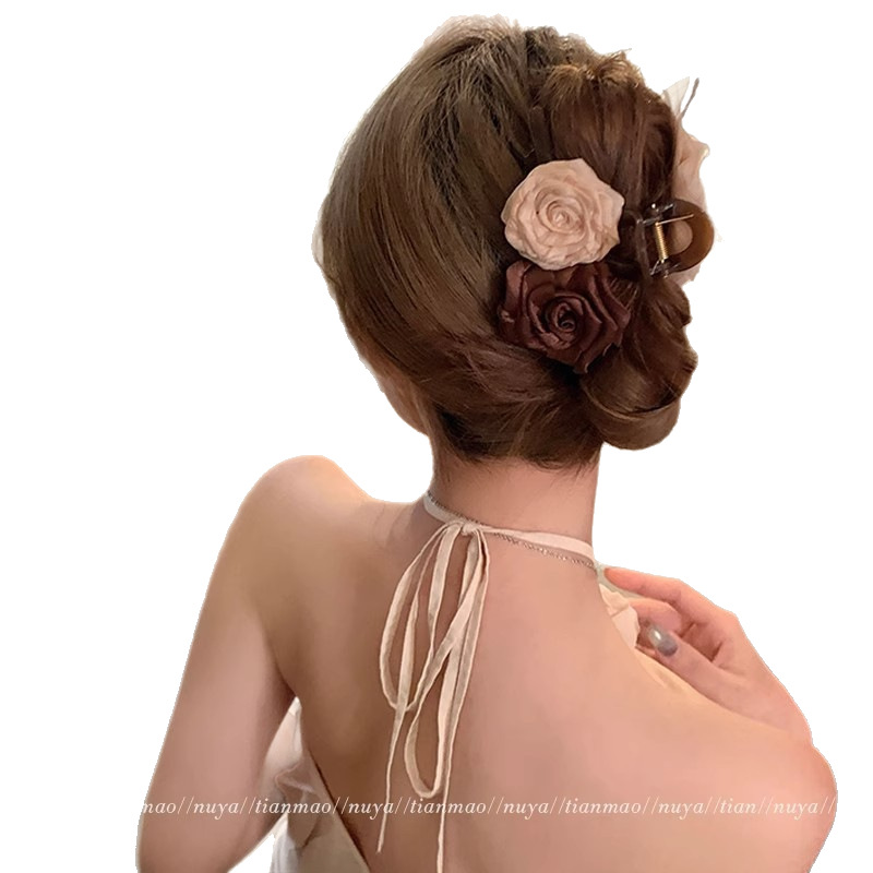 ethereal shiny diamond flowers shark clip [elegant black]