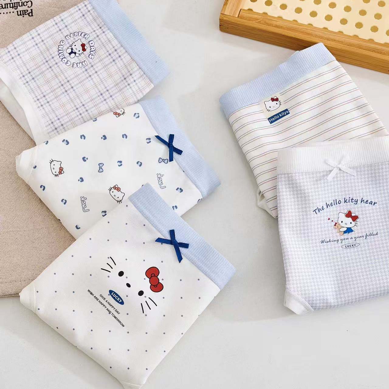 color: blue wave point, hello kitty, blue crazy bird, sea salt grid, blue coffee bar