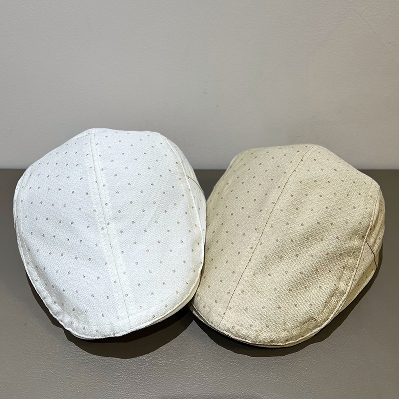 dot beret-khaki, dot beret-white, round