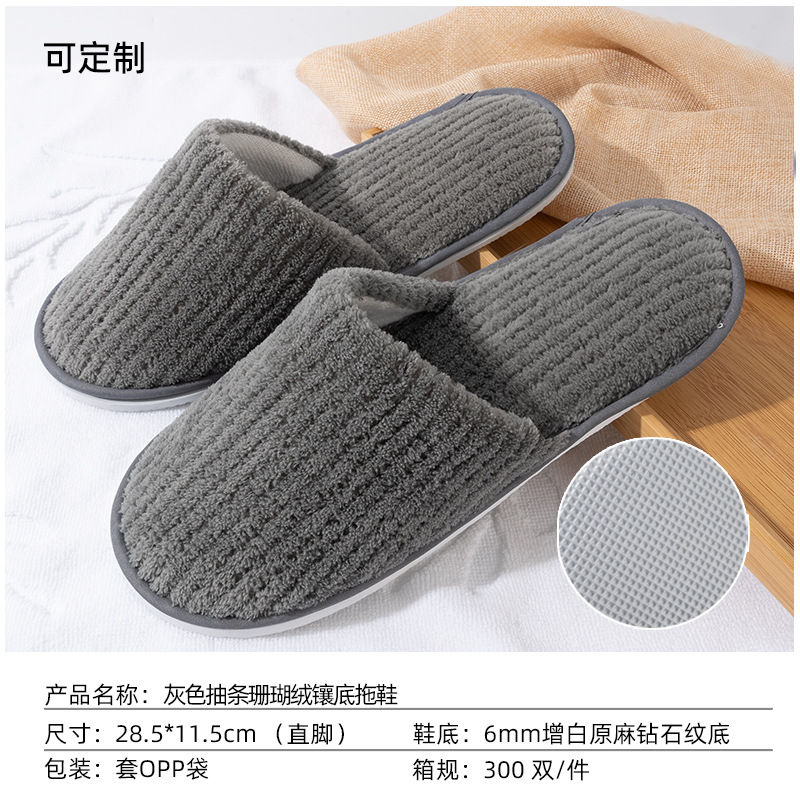 [same style as duo hotel] dark gray fine cotton velvet one-hand slipper