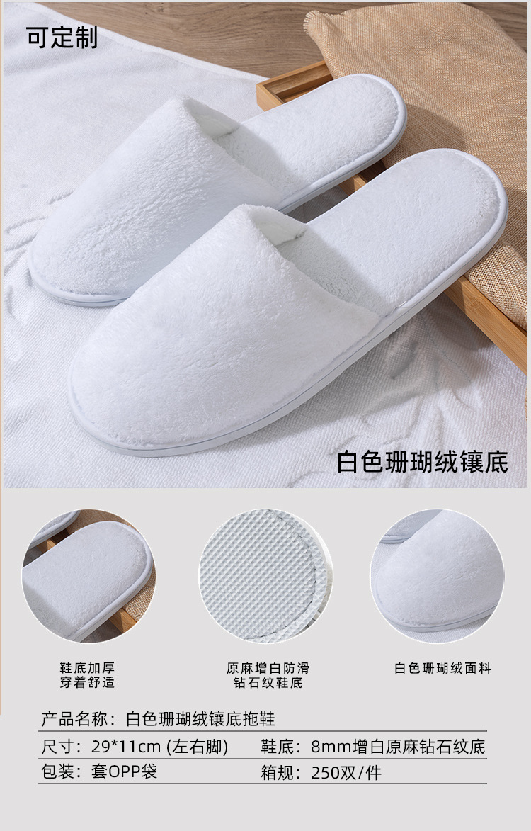 6.5mm white coral fleece-lined slippers