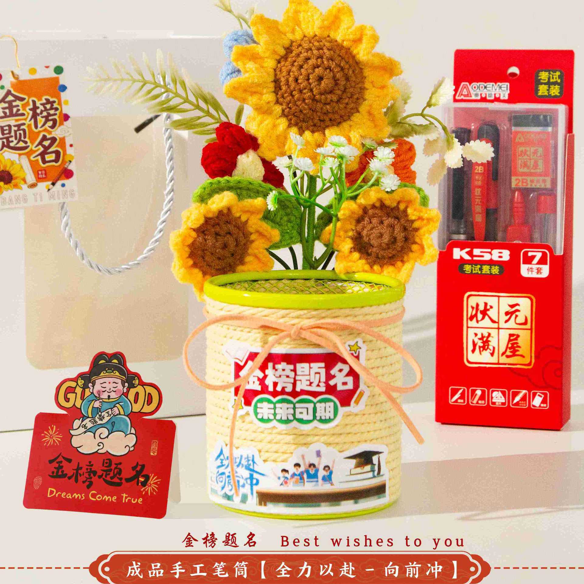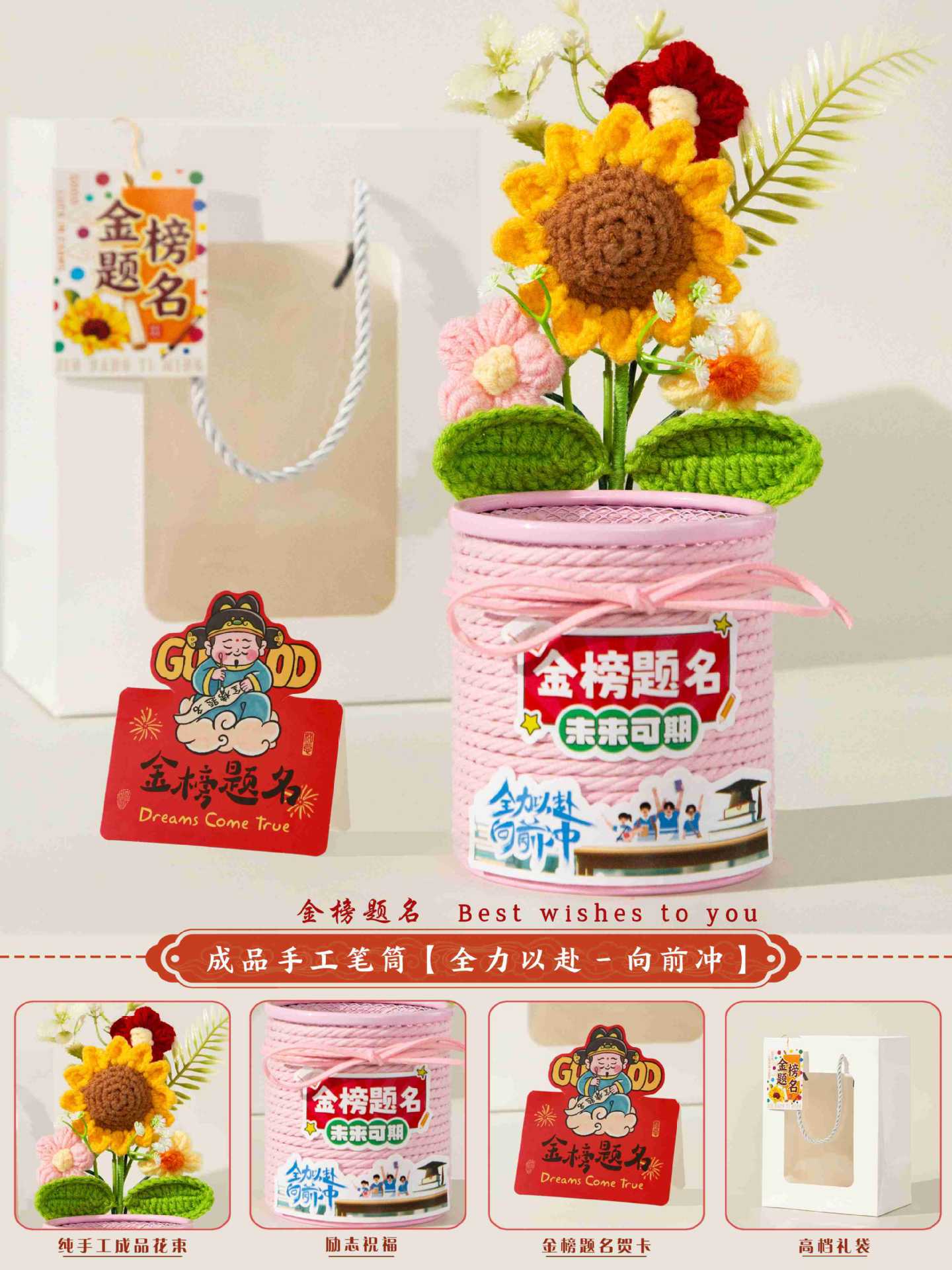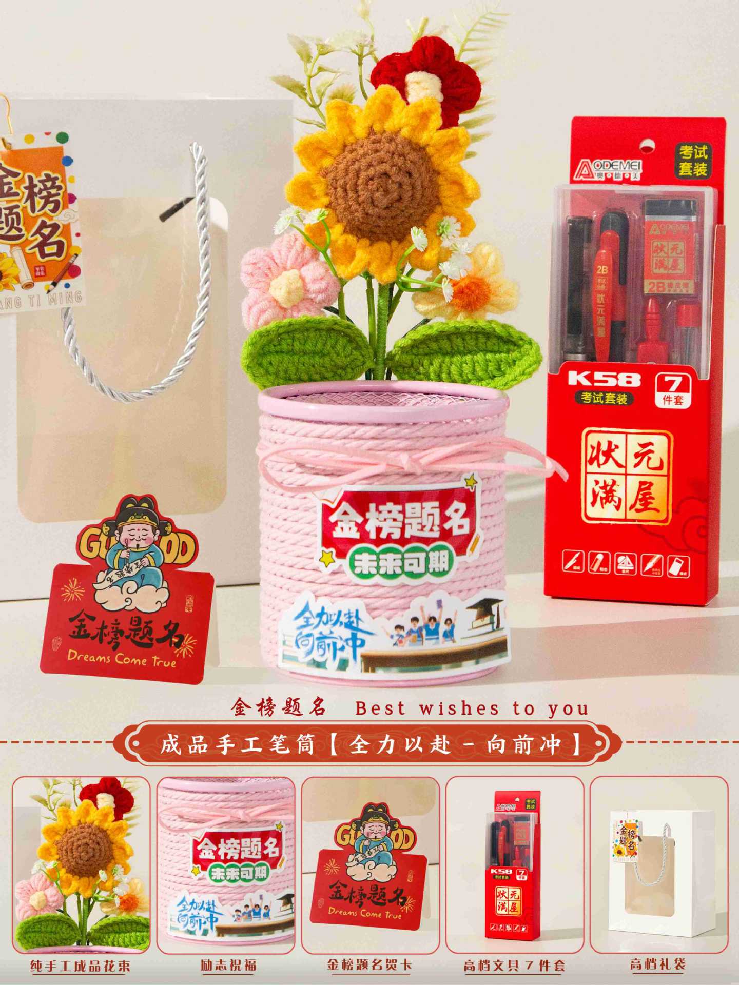 jinbang pen holder pink + stationery seven-piece set [gift bag included]