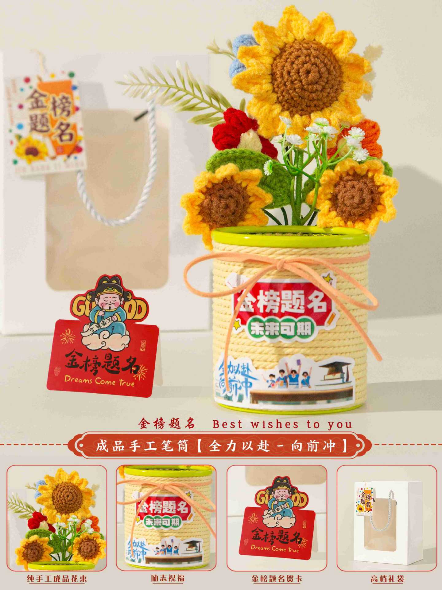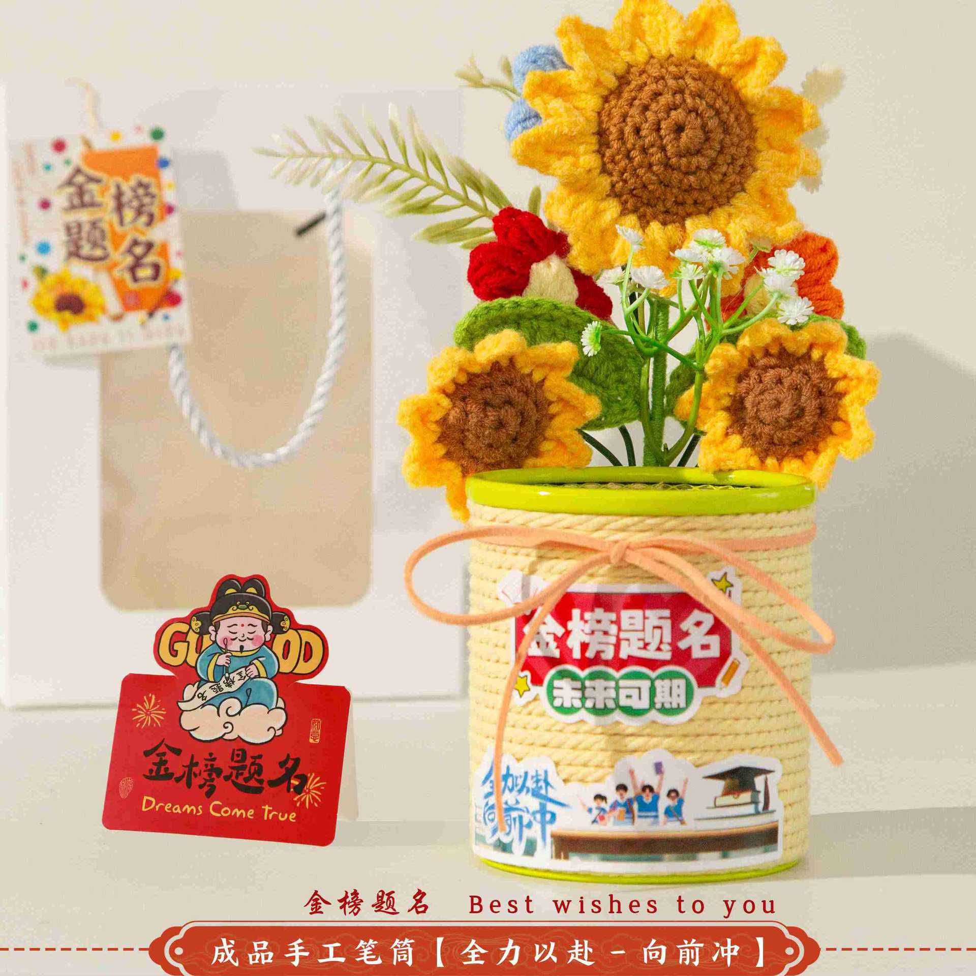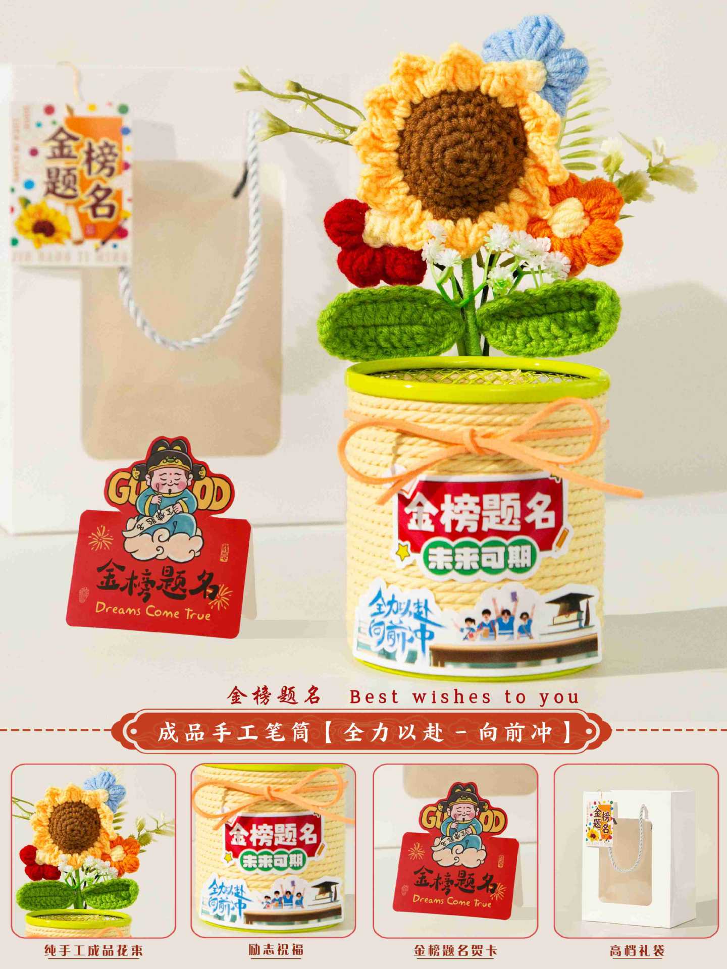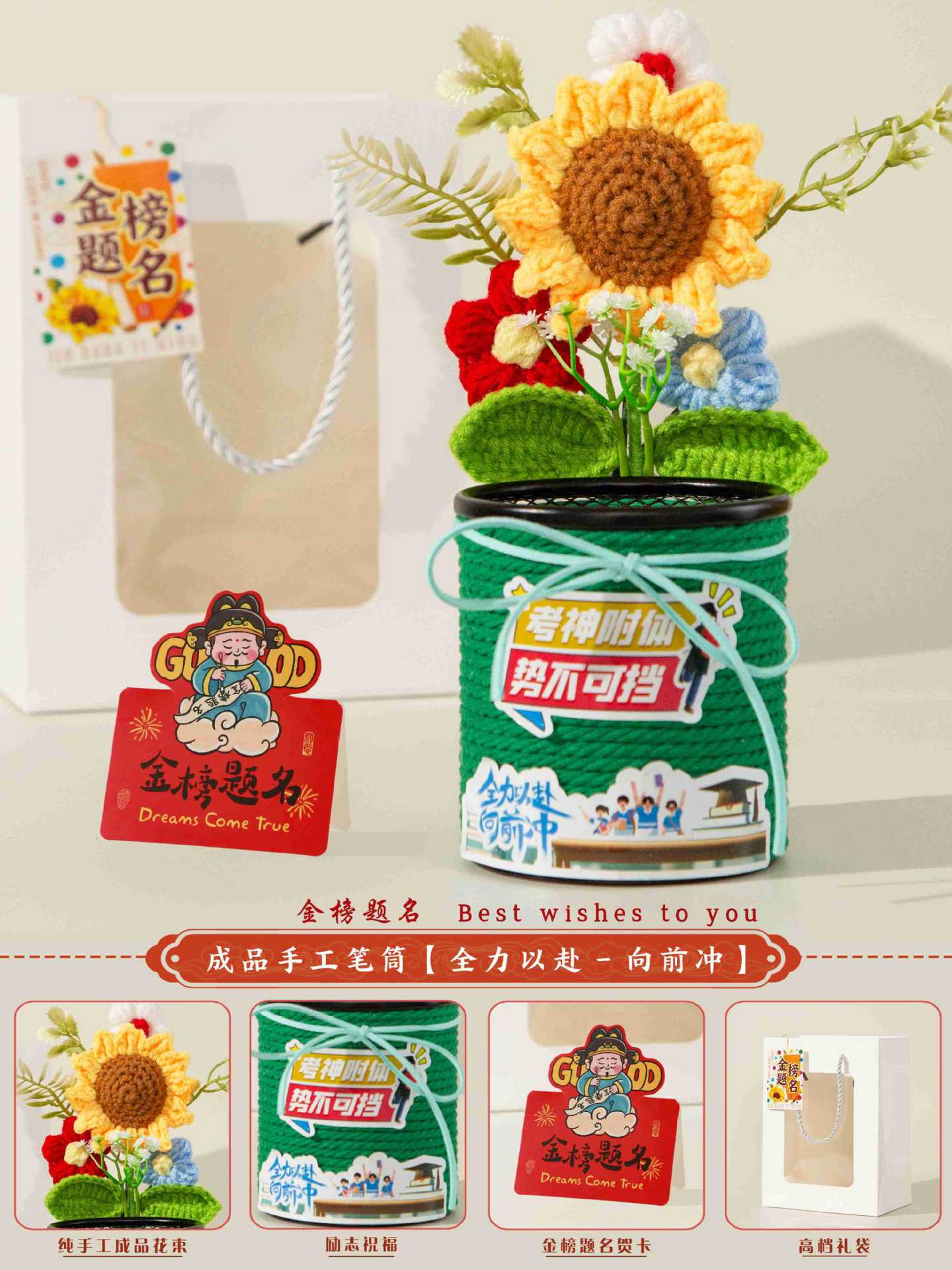 jinbang pen holder deluxe beige + stationery seven-piece set [gift bag included]