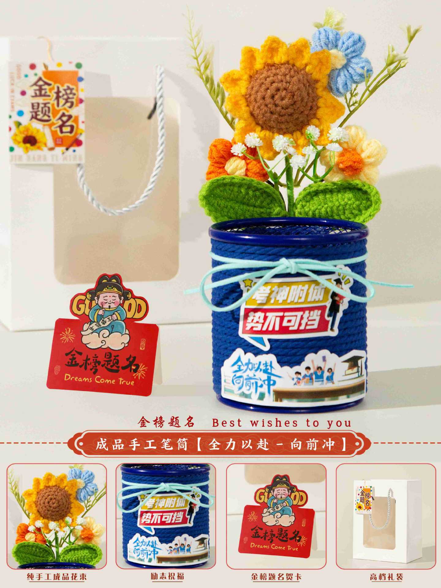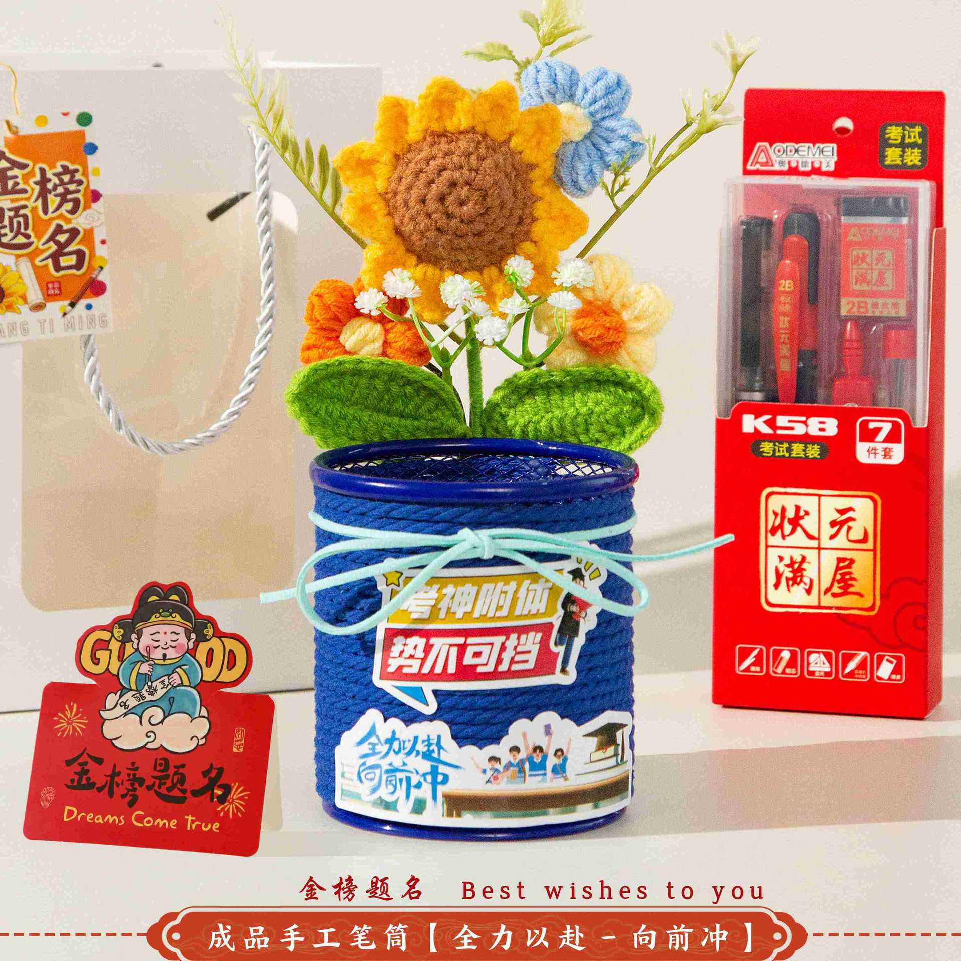 jinbang pen holder blue + stationery seven-piece set [gift bag included]