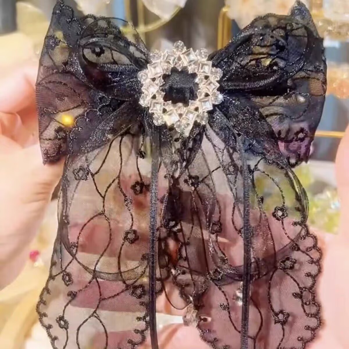 black lace bow spring clip