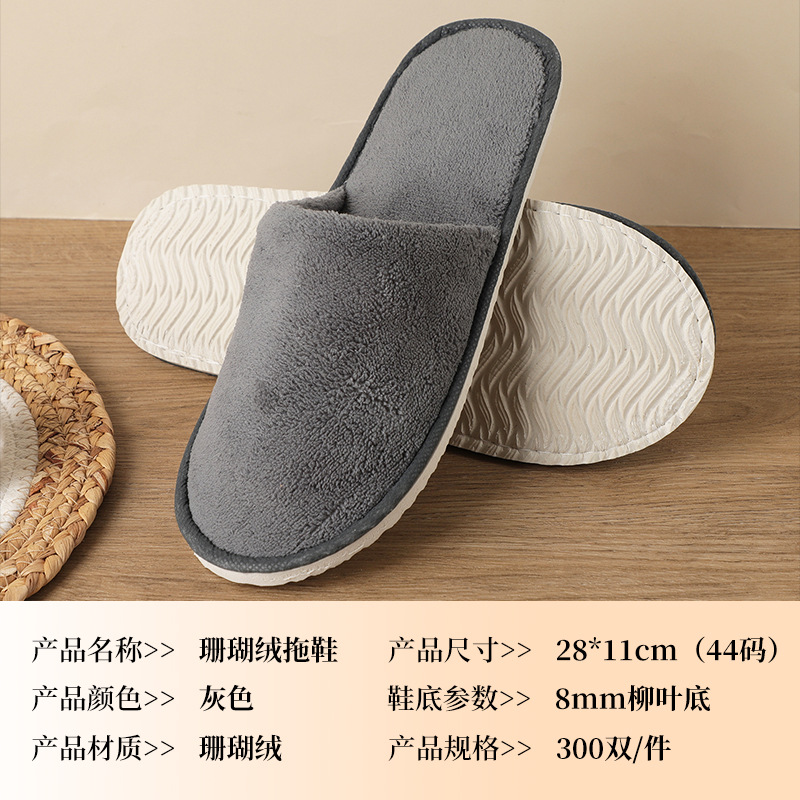 8mm gray inlaid coral velvet thick slippers size 44 non-slip sole