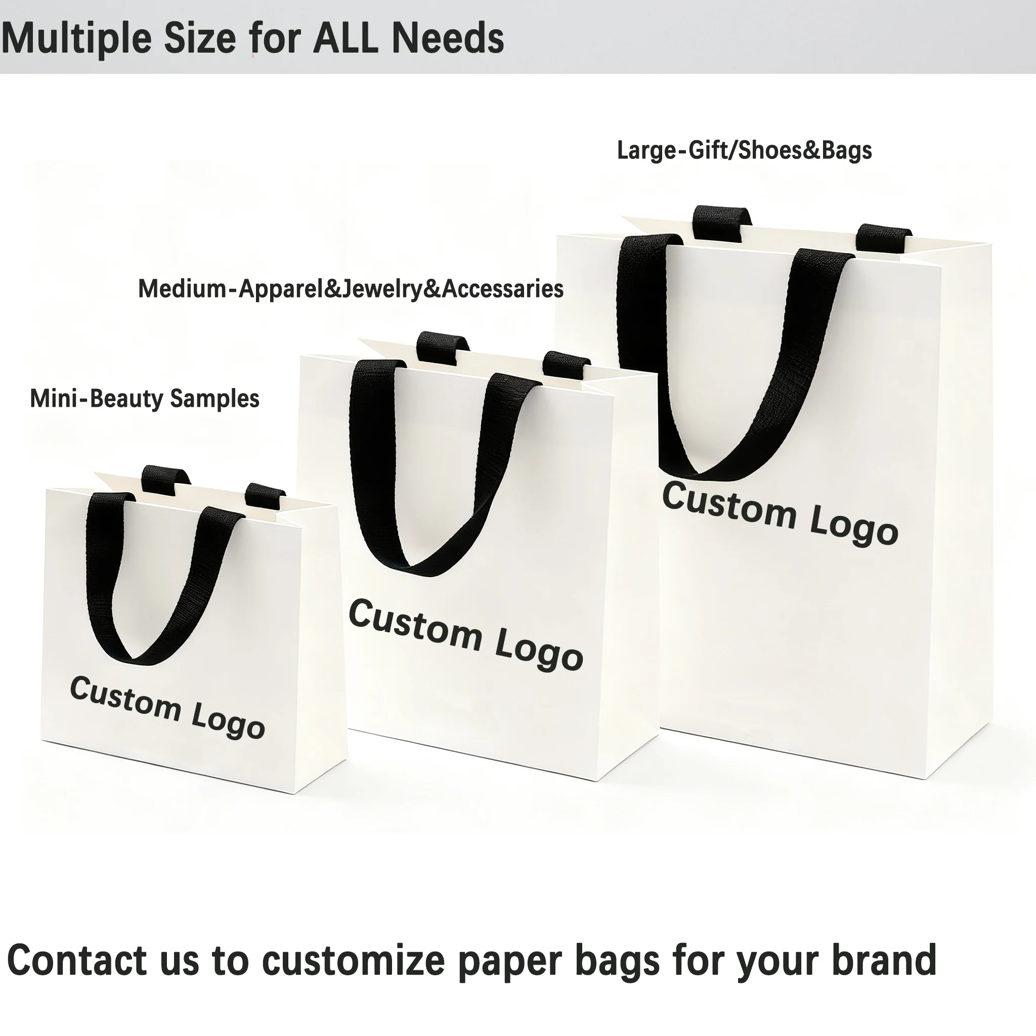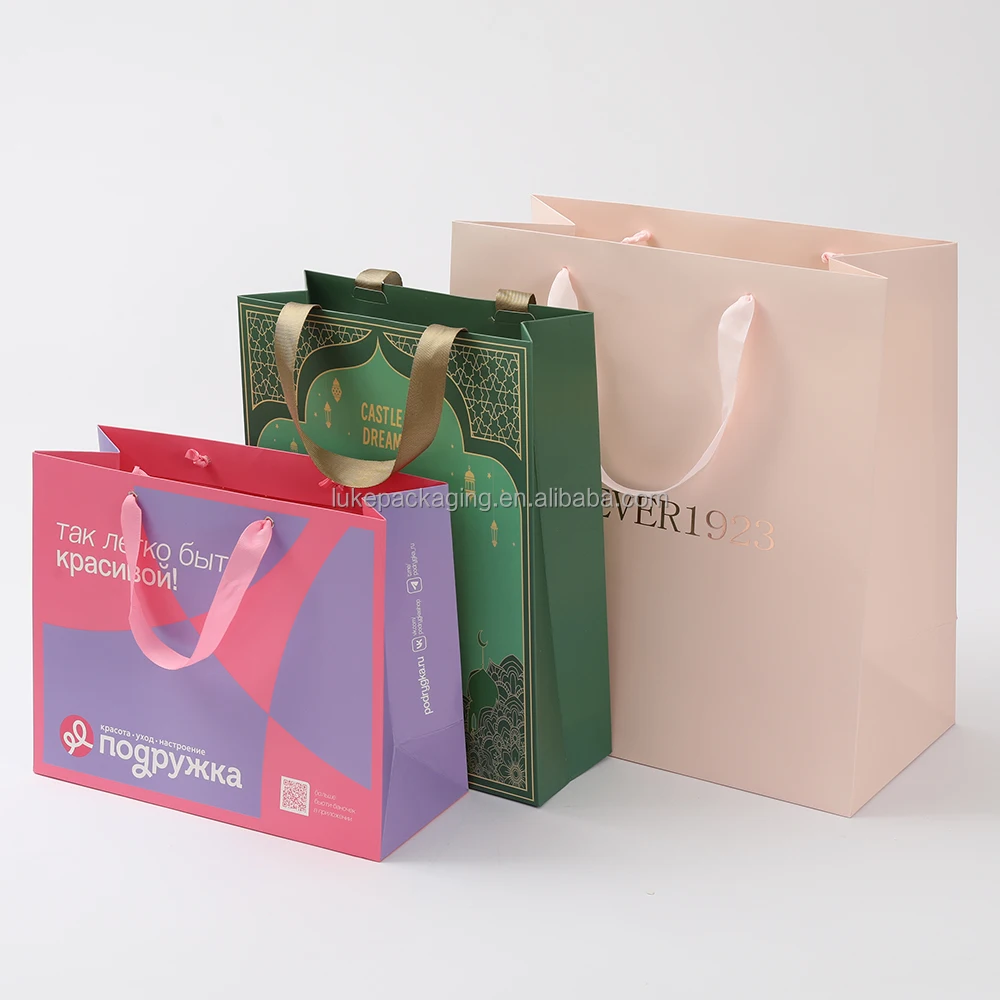 Full Customization Service: Gift Paper Bags, we offer a one-stop customization service, including custom sizes, custom colors (available with Pantone color codes), custom Logo printing (hot stamping, screen printing, or digital printing), and even custom ribbon colors, perfectly matching your brand standards.