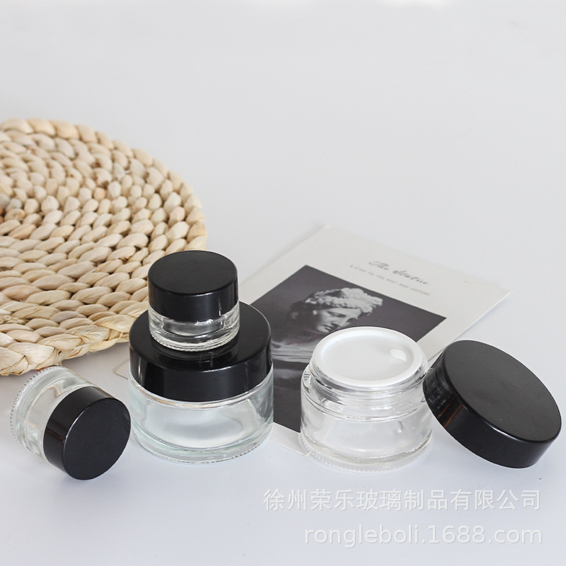 20g; black cover + transparent cream bottle; glass