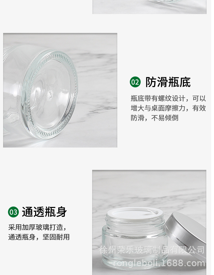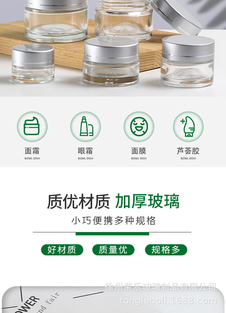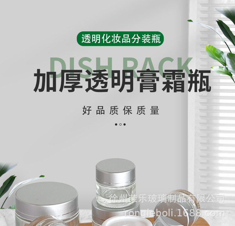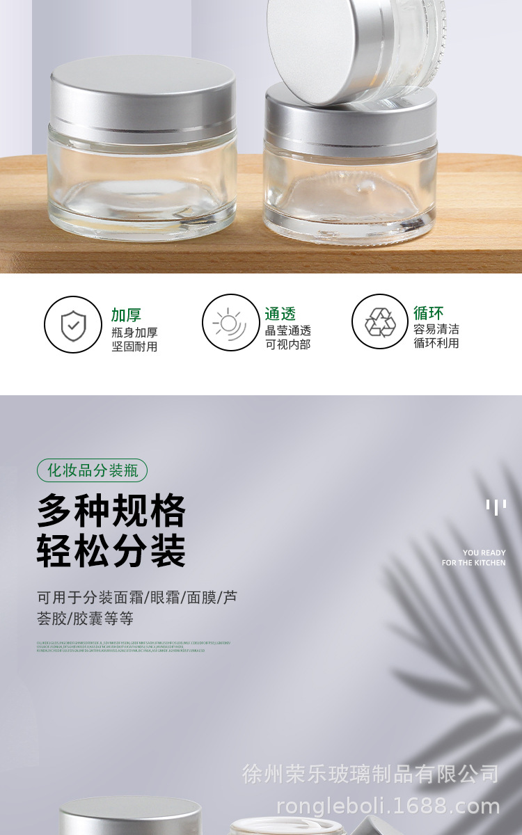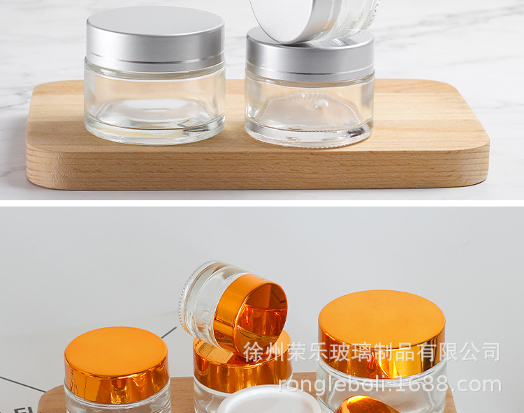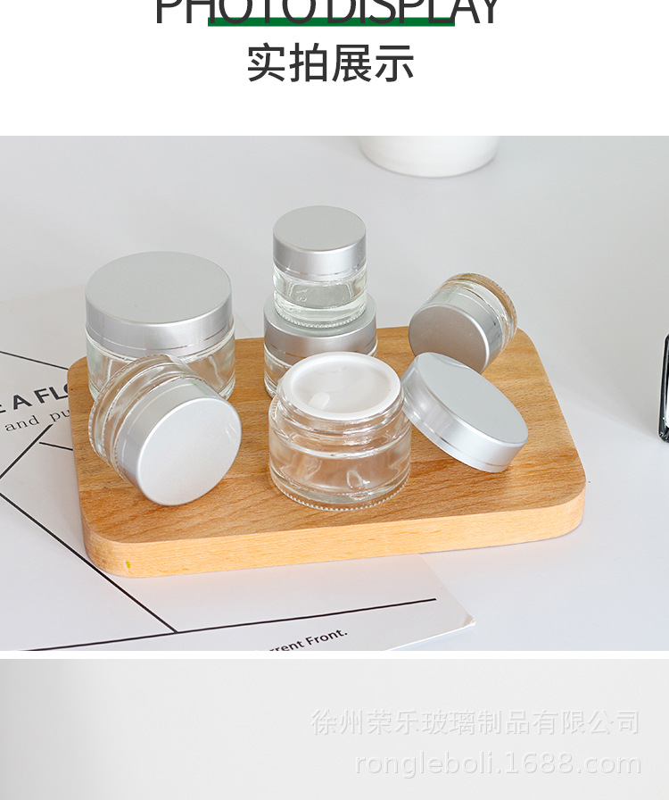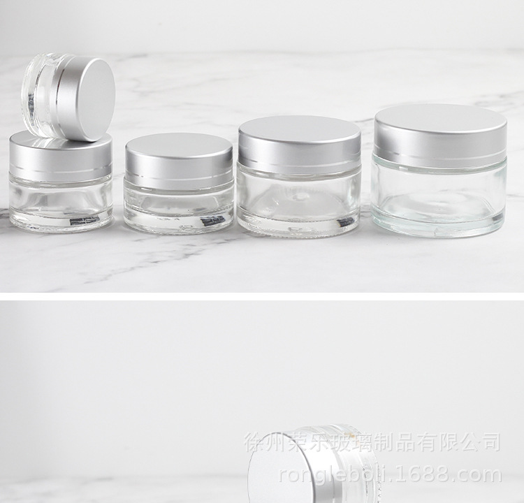 20g; silver aluminum cover + transparent cream bottle; glass