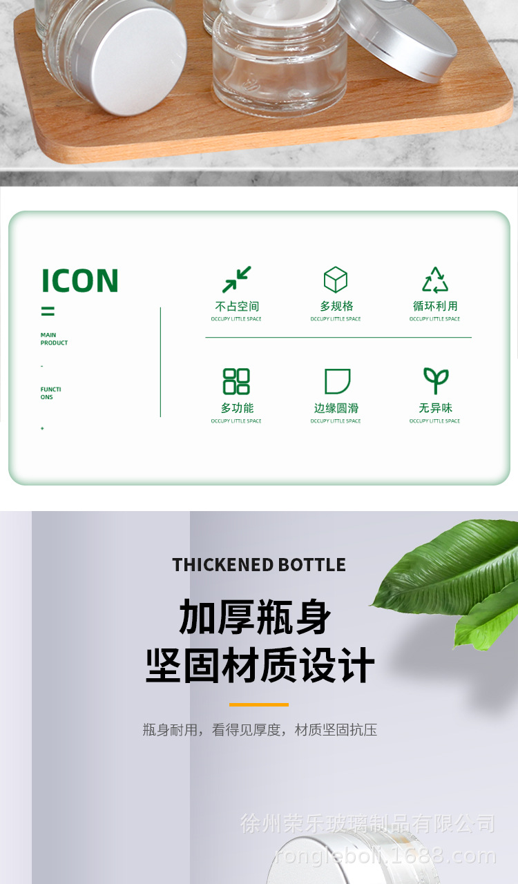 30g; light wood grain cover + transparent cream bottle; glass