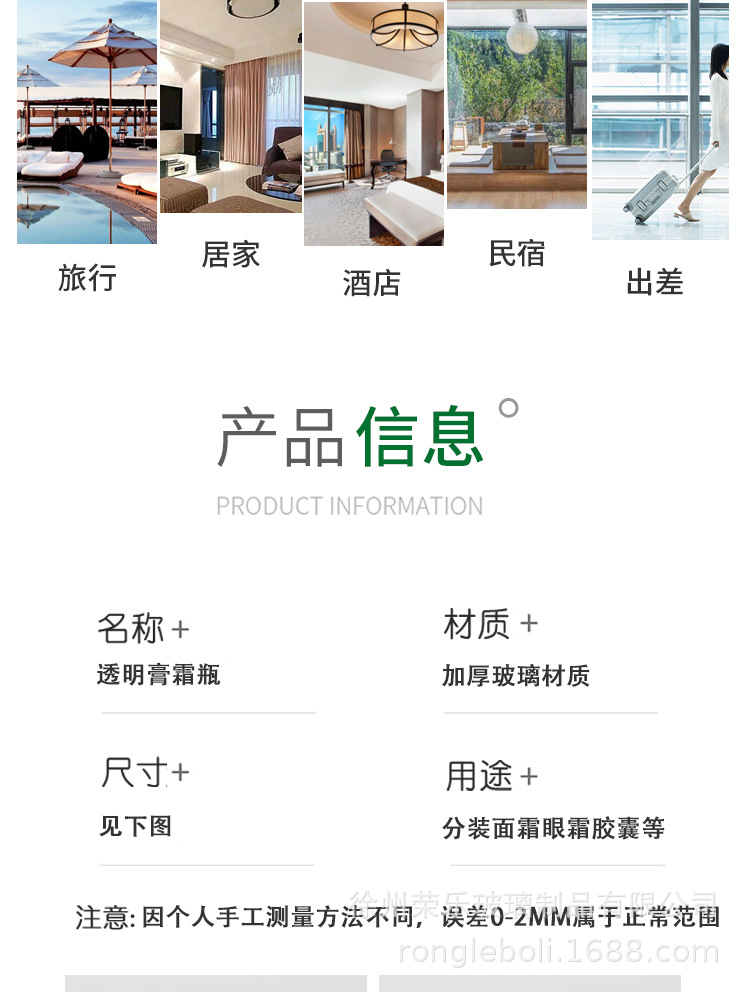 20g; light wood grain cover + transparent cream bottle; glass