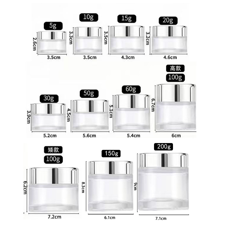 5g; bright silver cover + transparent cream bottle; glass