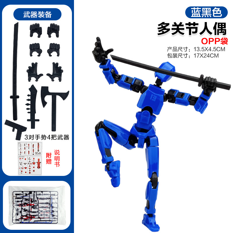 [opp bag] blue and black-multi-joint doll (3 pairs of gestures and 4 weapons) 66g