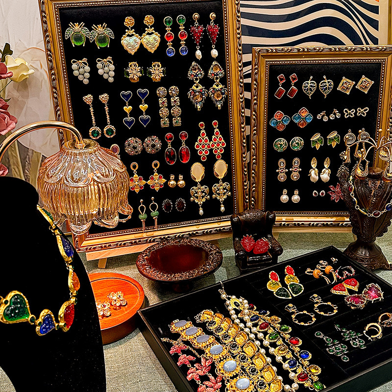 60# silver needle mid-ancient diamond resin pearl oval earrings