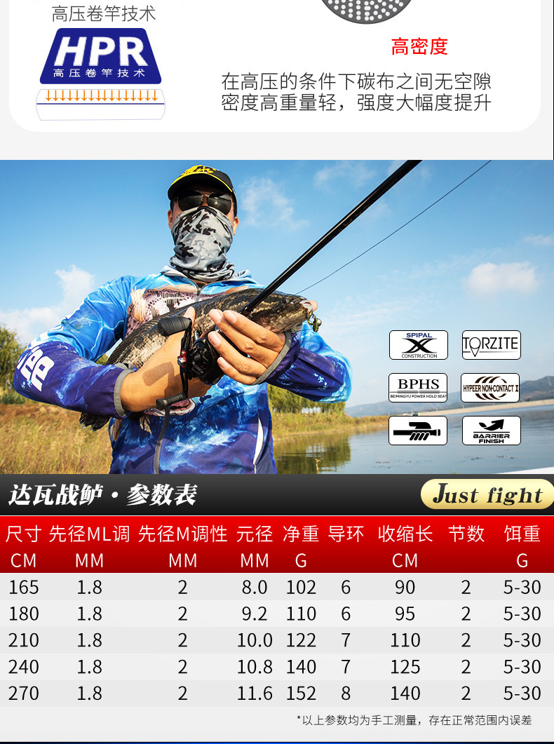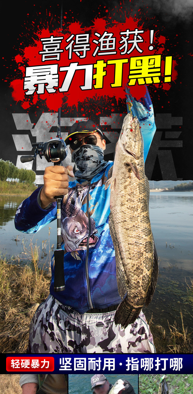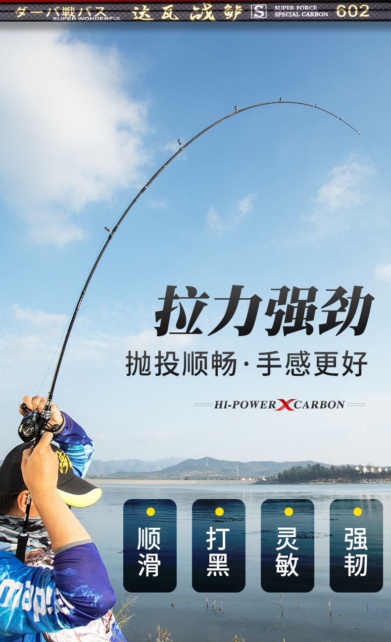 达瓦战鲈热销经典款路亚竿,采用8层碳布缠绕X型工艺制作,使竿身均衡更强韧,适用于鲈鱼、黑鱼、翘嘴、罗飞、鲅鱼、军鱼、鱤鱼、桂鱼等多种攻击性比较强的鱼类,适用各种水域。