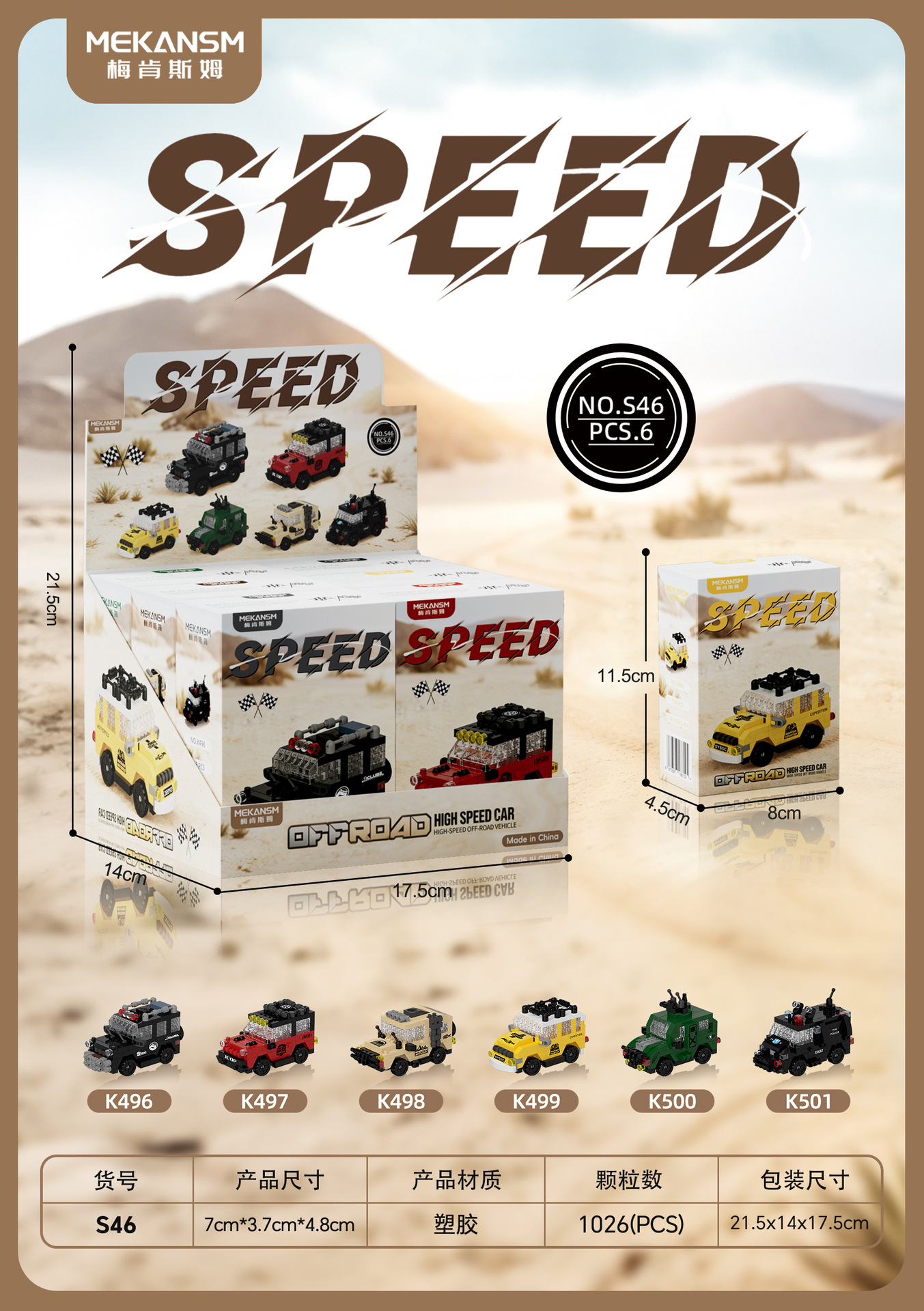 k496-k501 speed off-road vehicle (six collection) individually boxed