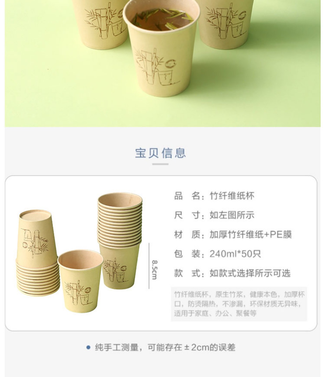bamboo fiber paper cups [50 pcs] super thick