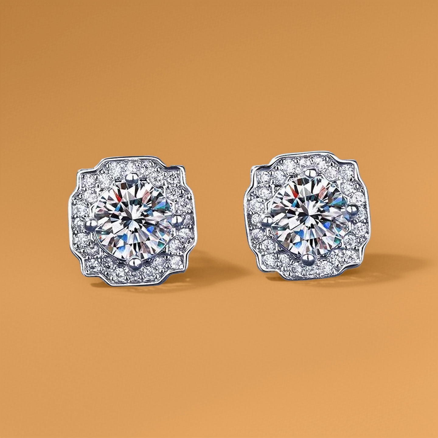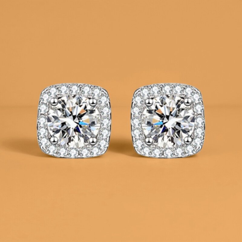 ed-6 square stud earrings, one carat