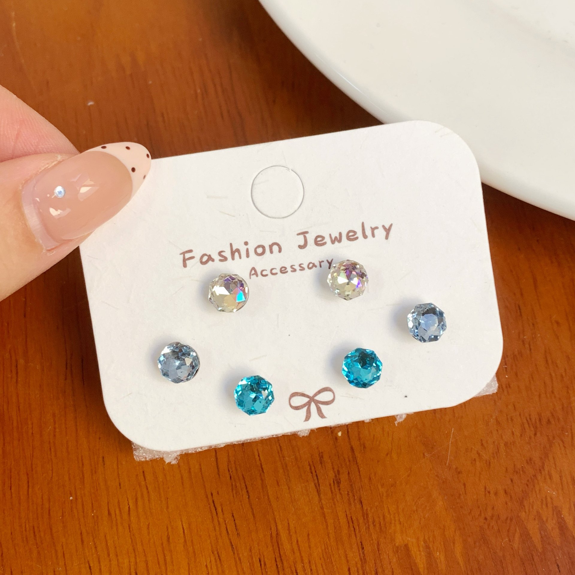 he19 [6mm straight needle model] double blue rose cut three-piece set