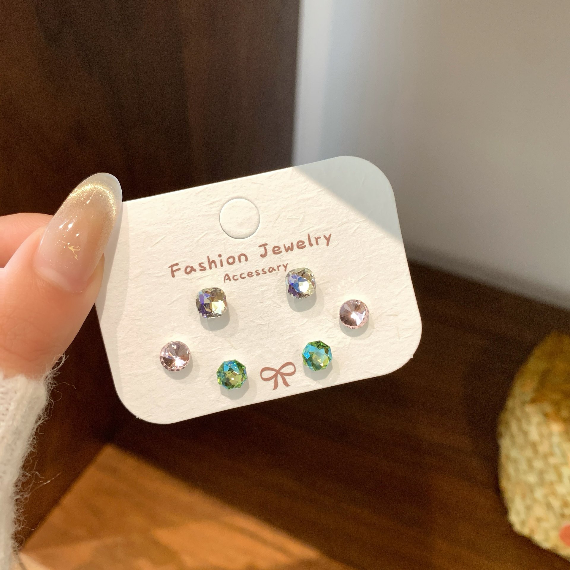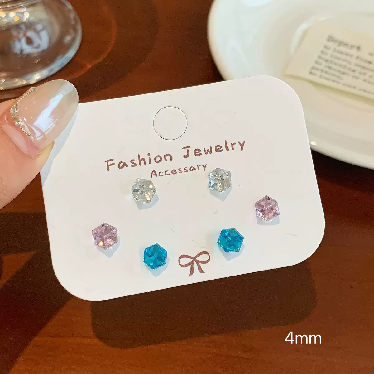he21 [6mm straight needle model] pink and green rose cut three-piece set