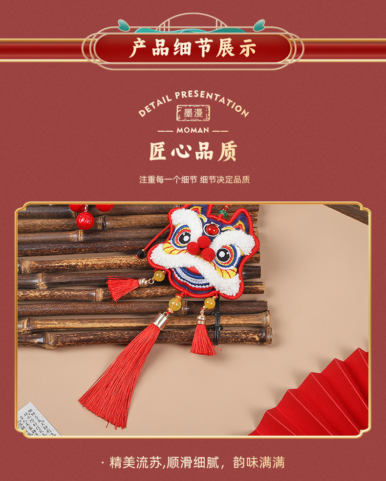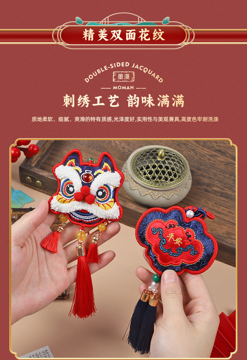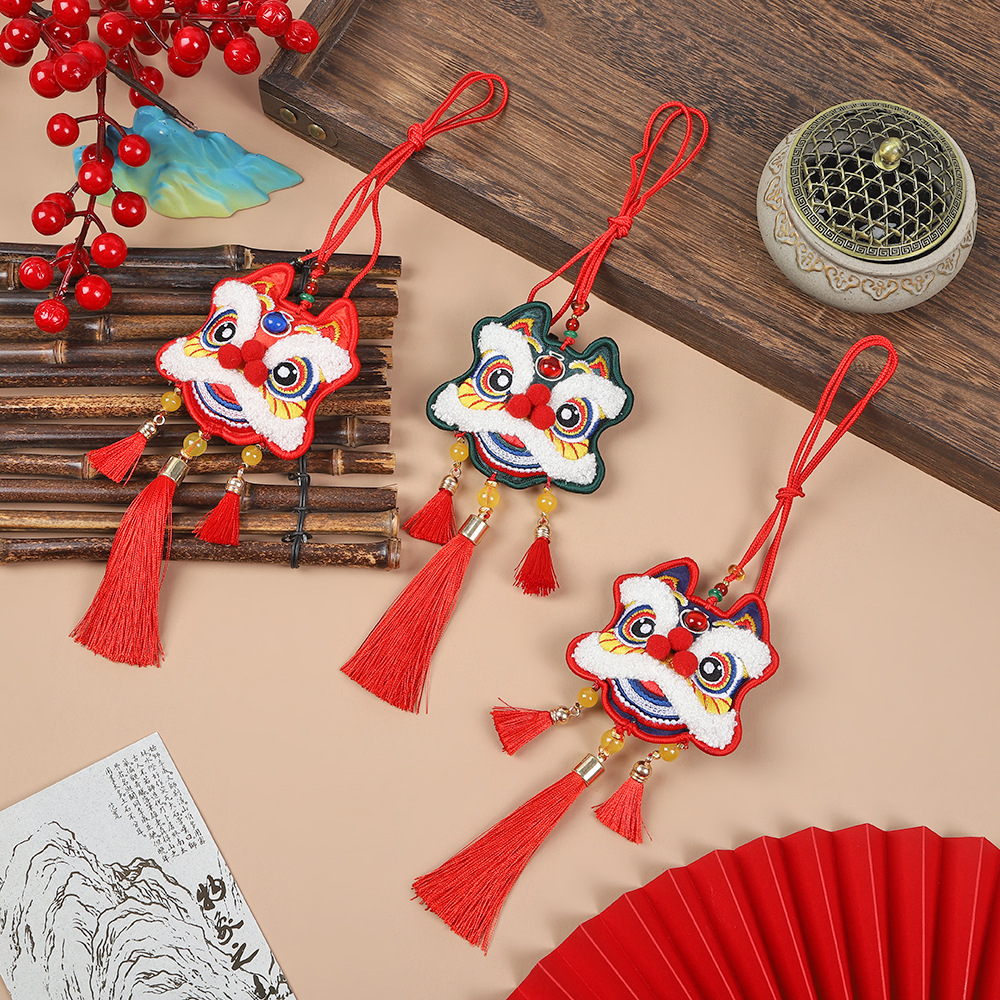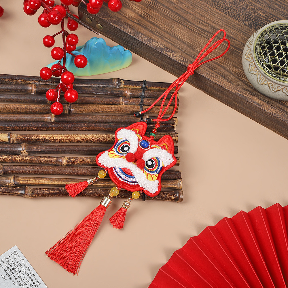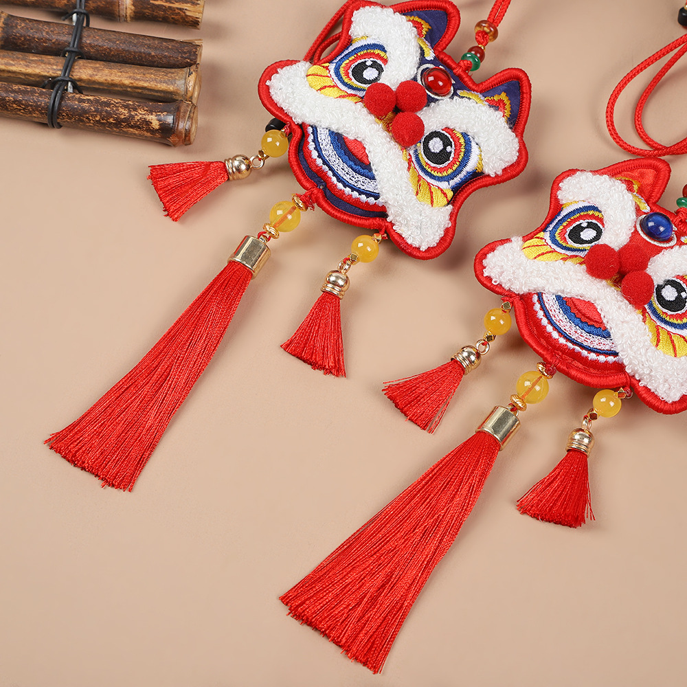 neck-hanging towel embroidery lion dance-red