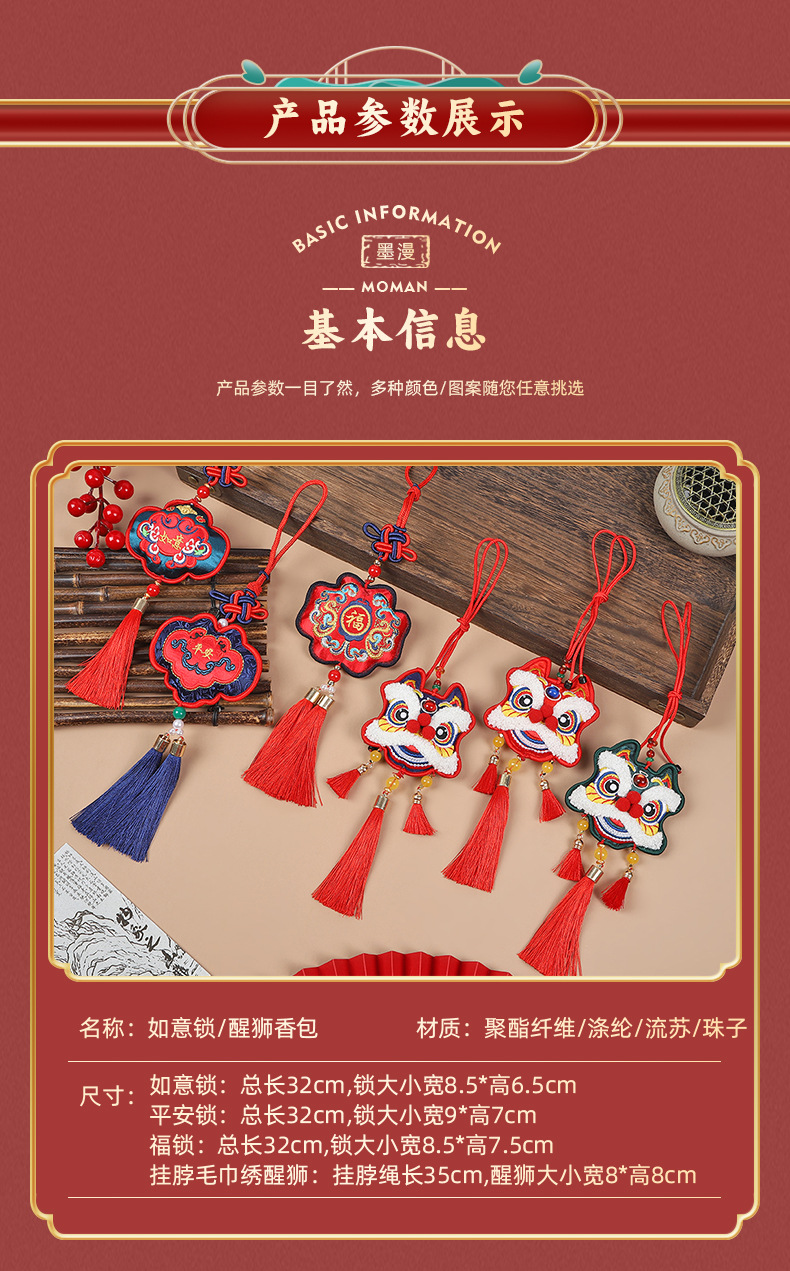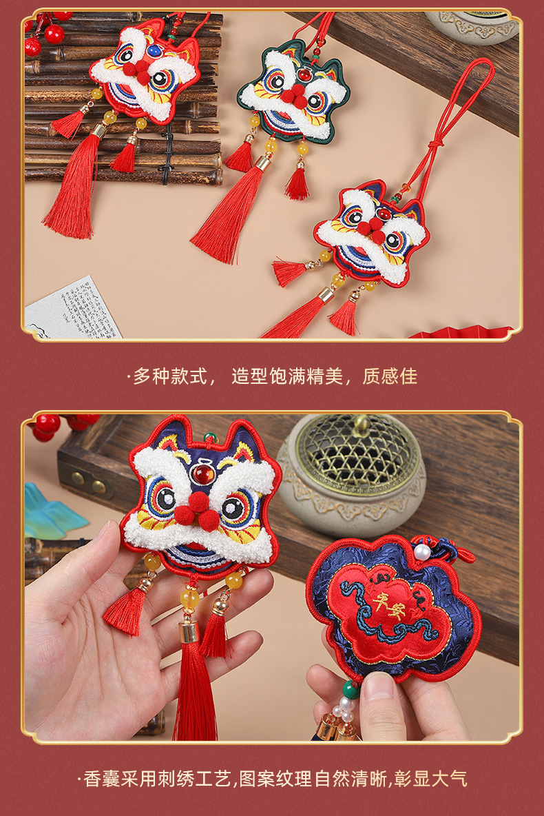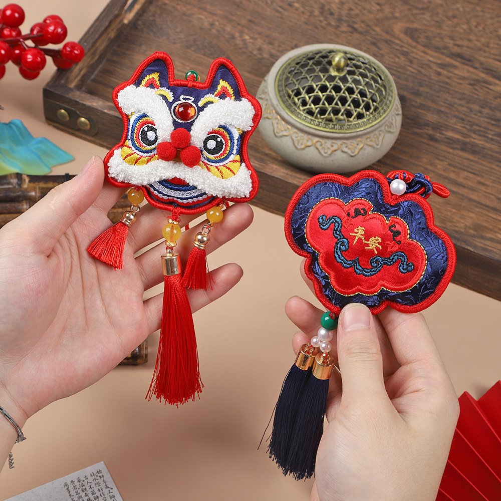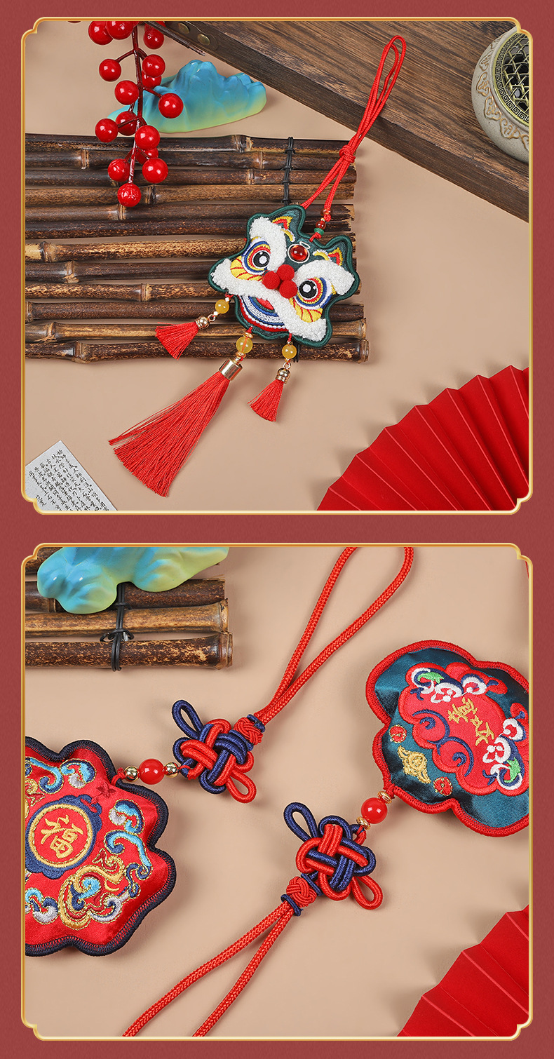 neck-hanging towel embroidery lion dance-red