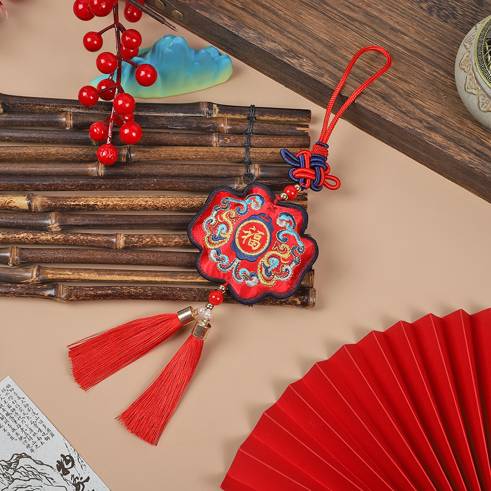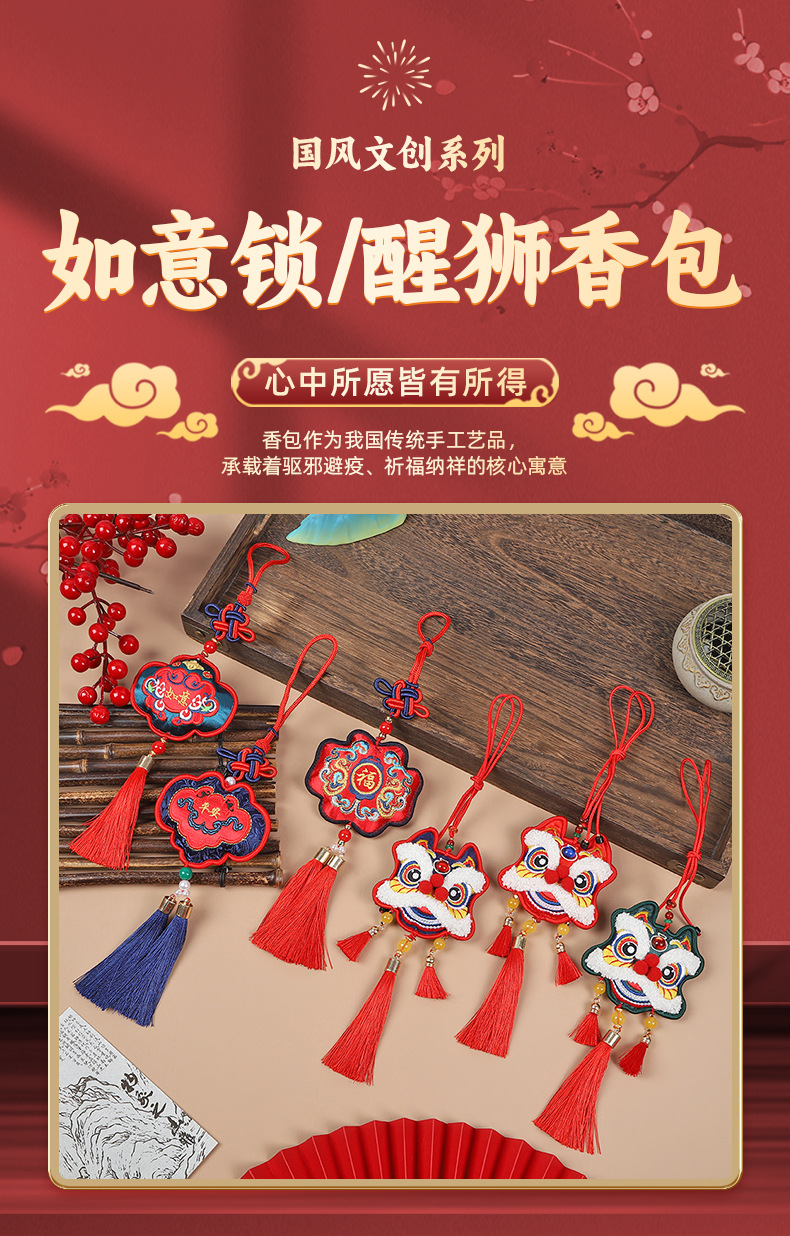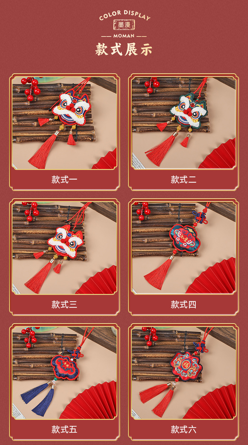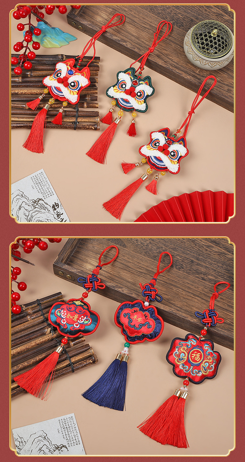 neck-hanging towel embroidery lion dance-red