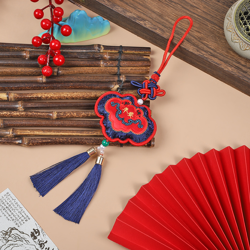 neck-hanging towel embroidery lion dance-blue