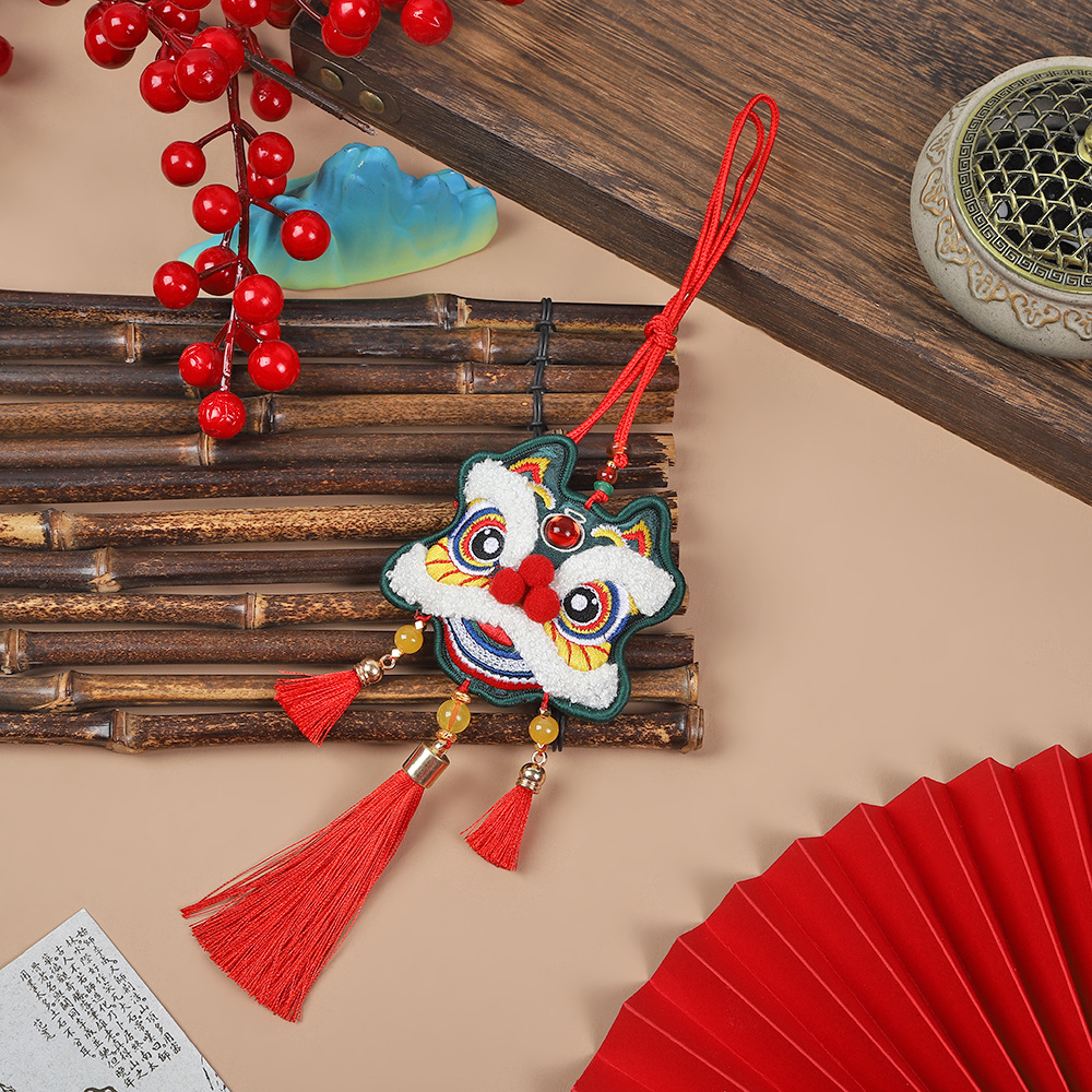 neck-hanging towel embroidery lion dance-green