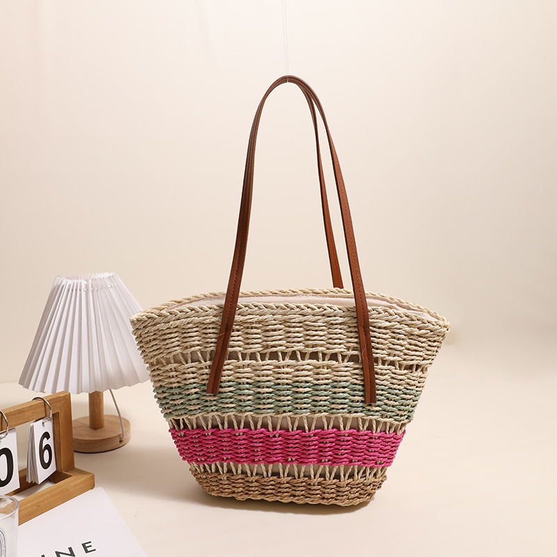 three-color basket: green, pink, and coffee