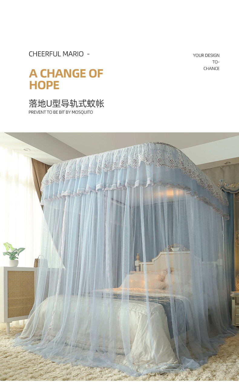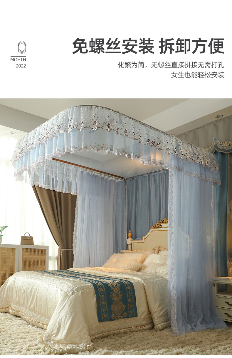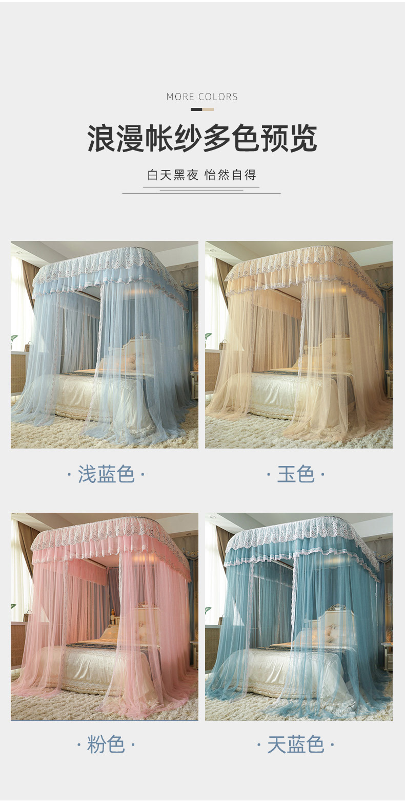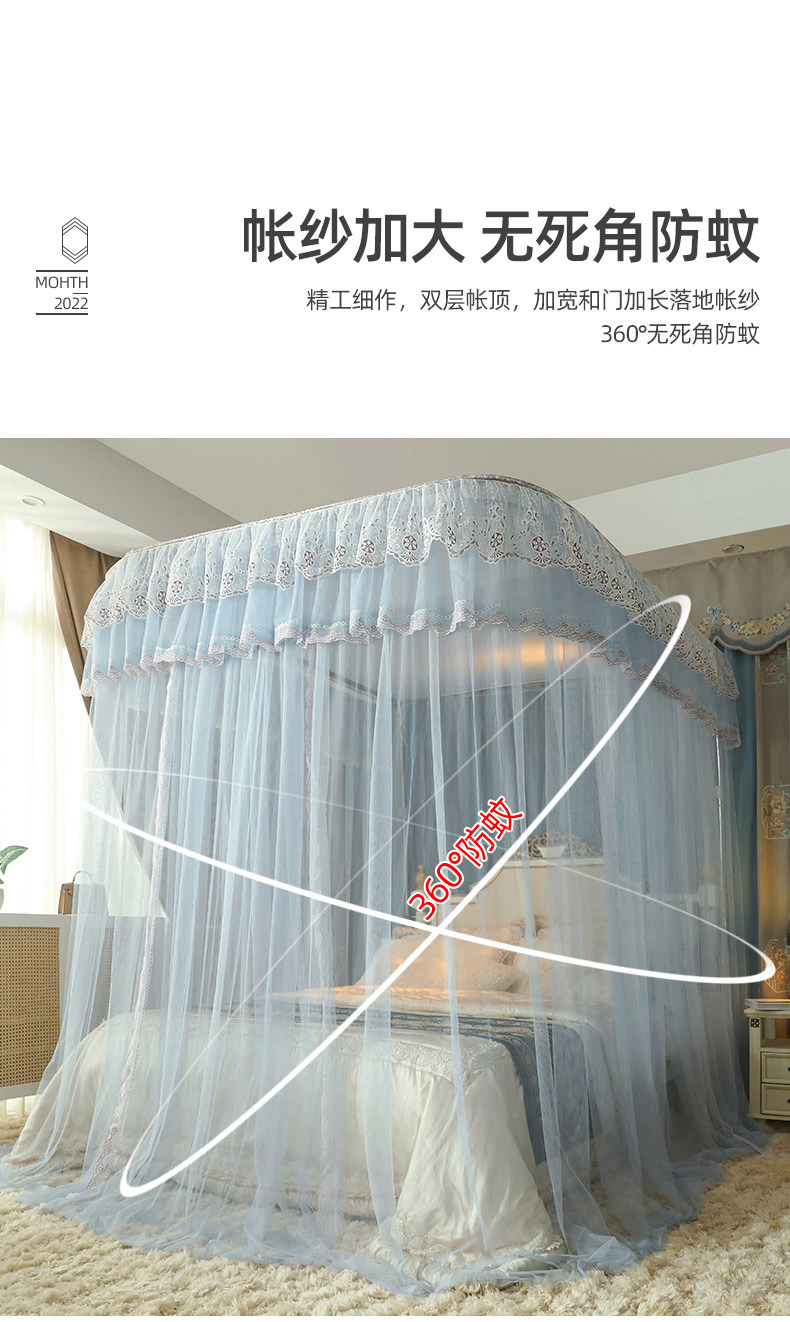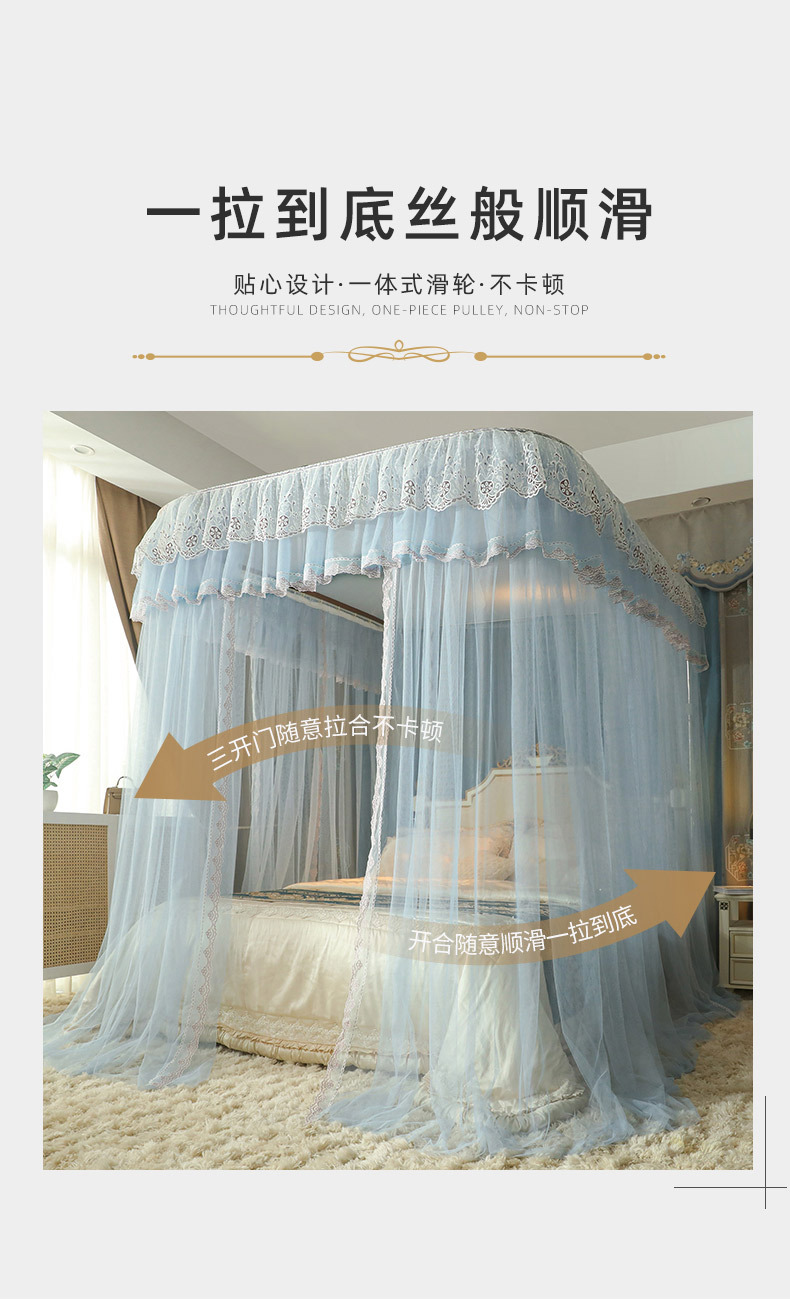 u-shaped rail telescopic three-door mosquito net track palace style floor-standing princess style 1.5m/1.8m bed double home