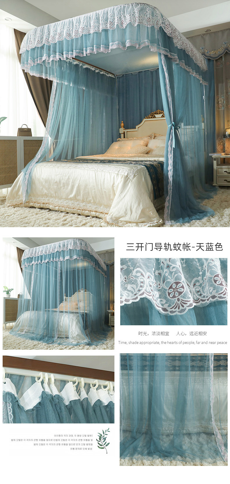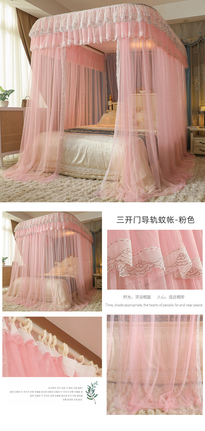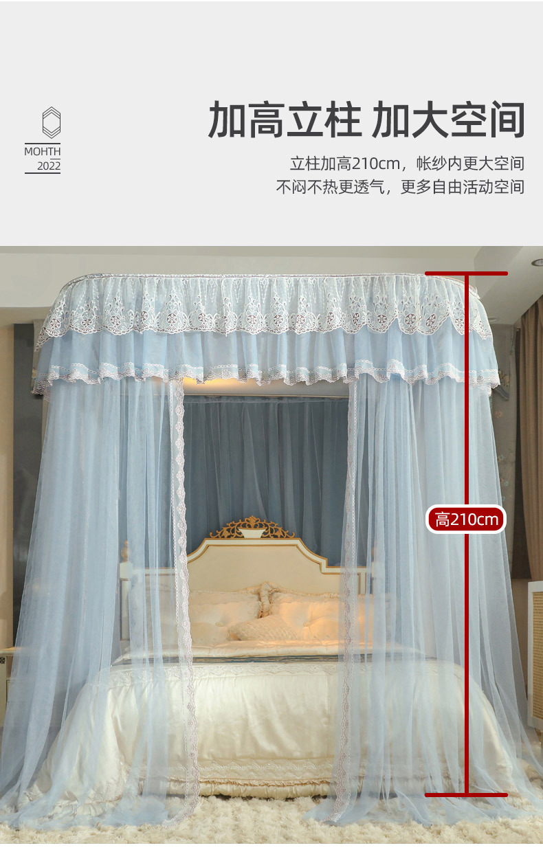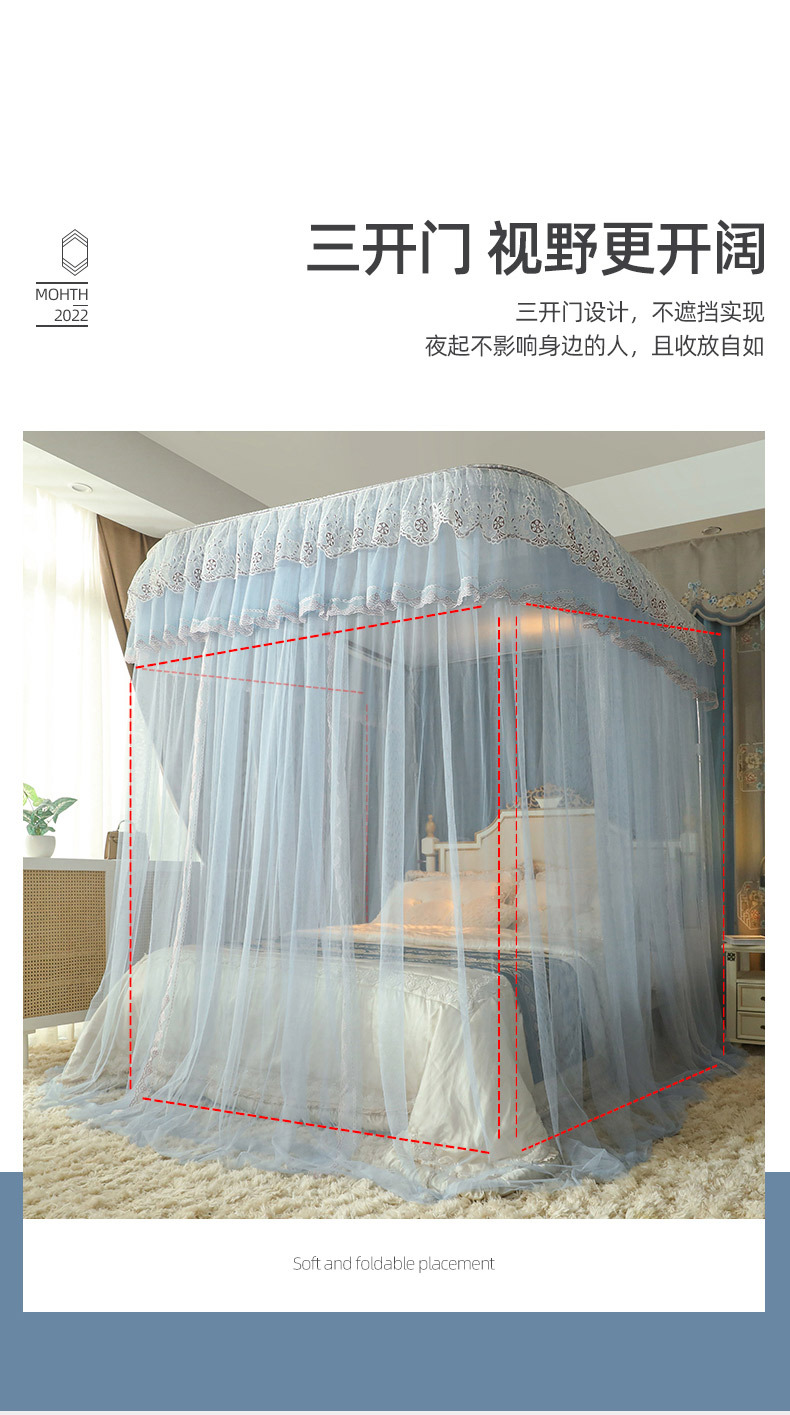 u-shaped rail telescopic three-door mosquito net track palace style floor-standing princess style 1.5m/1.8m bed double home