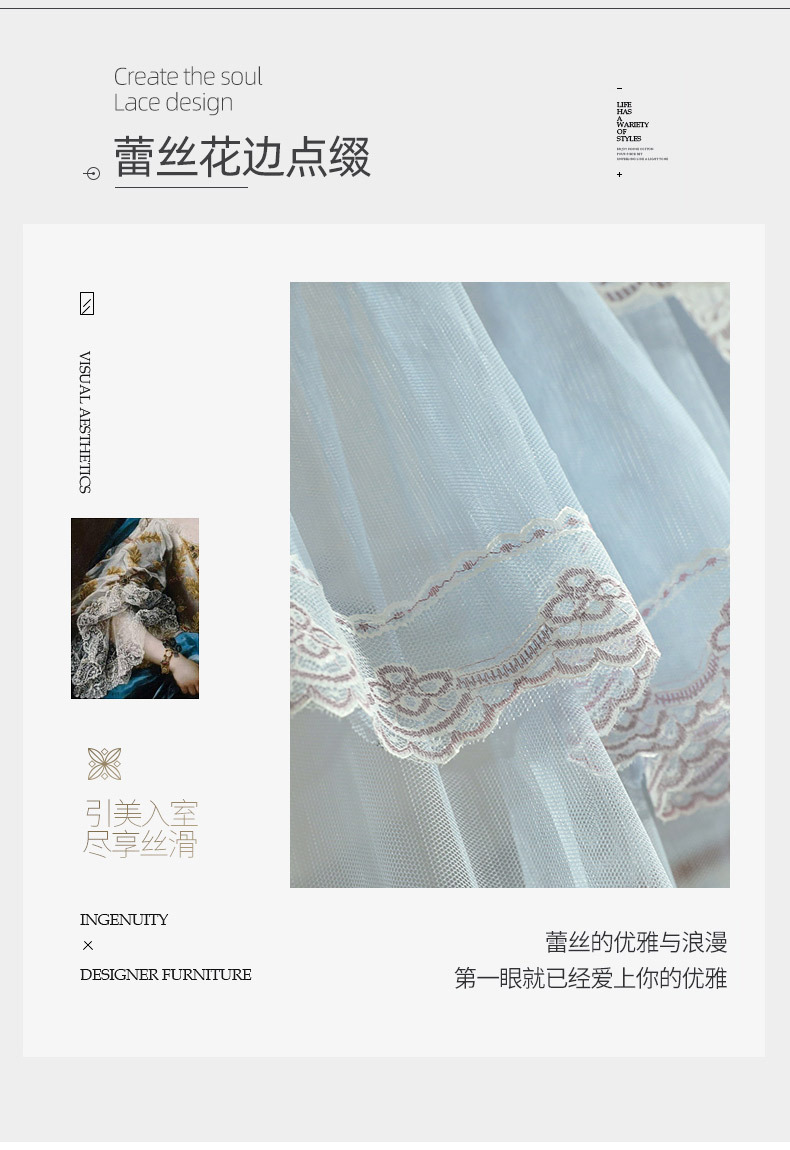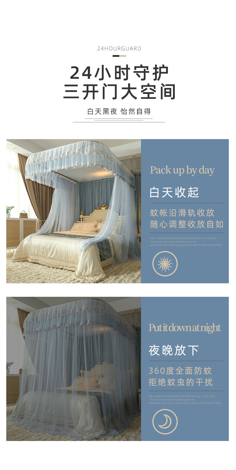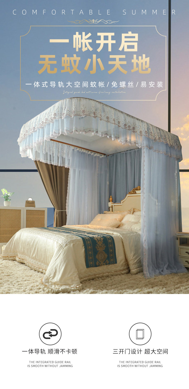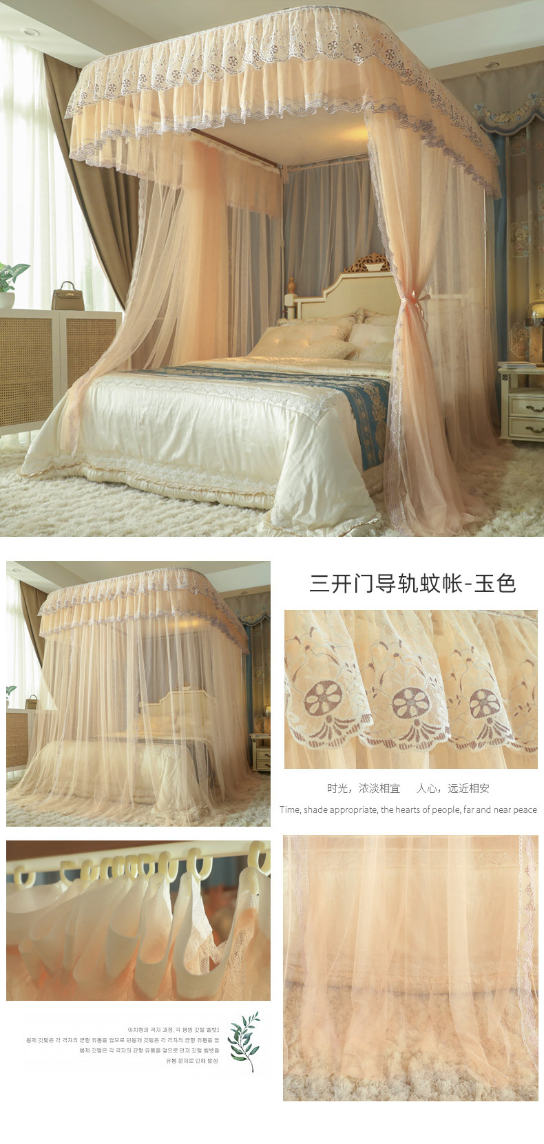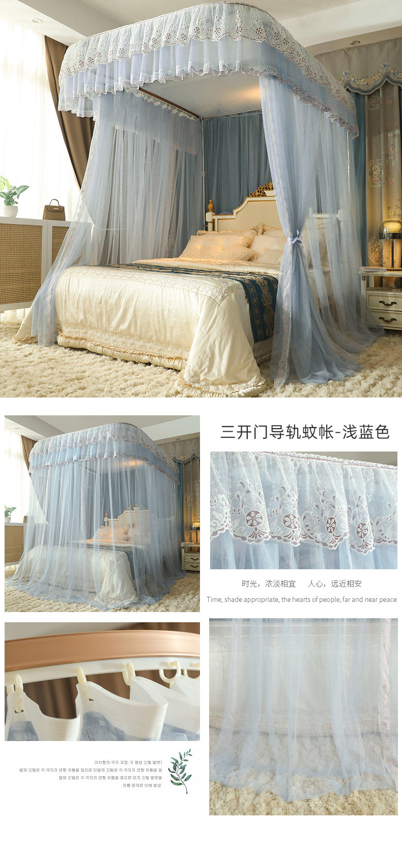 u-shaped rail telescopic three-door mosquito net track palace style floor-standing princess style 1.5m/1.8m bed double home