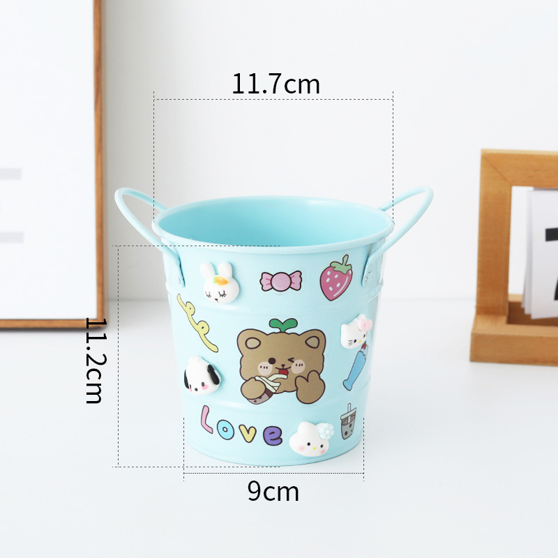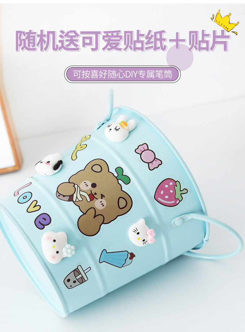 binaural pen holder light blue + bear sticker + random three-dimensional patch 4