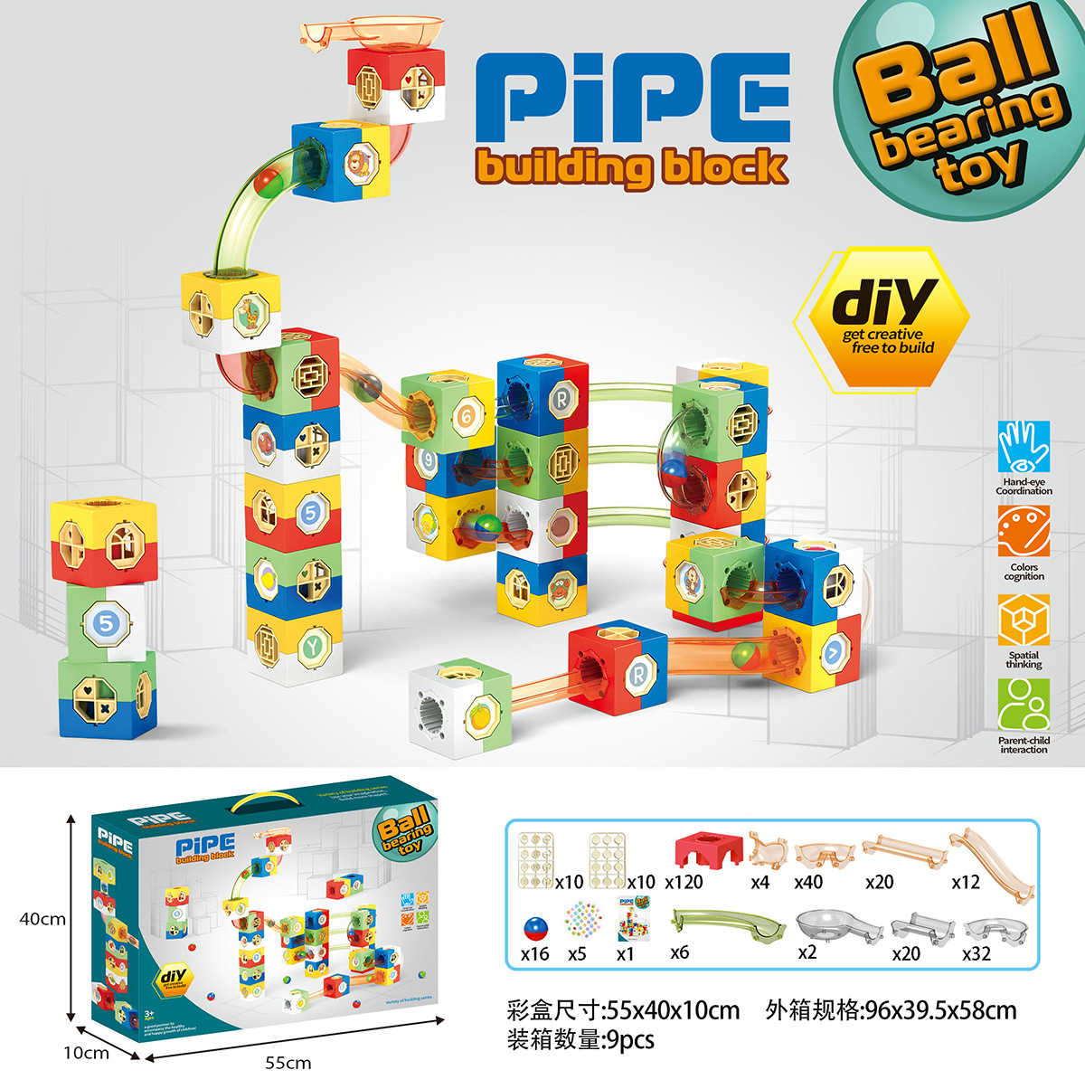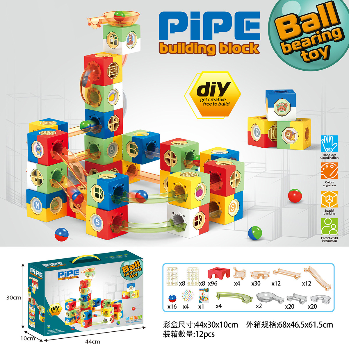 square ball building blocks-about 458pcs (colored box suite)