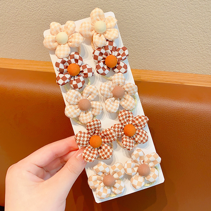 9# plaid coffee color flowers 10 pieces (no card)