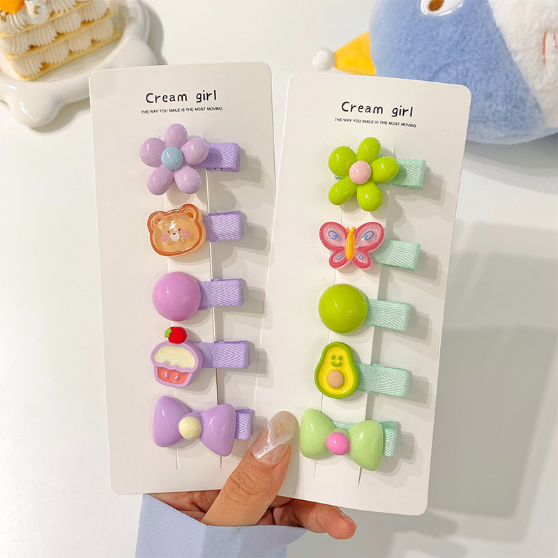 1# green flower barrettes 5-piece set [bagged]