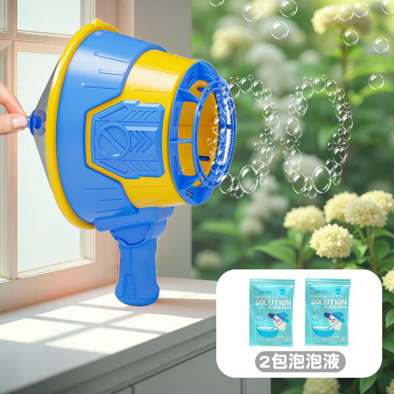 [blue] air-inflating toy bubble machine [with 2 packs of bubble mixture]]