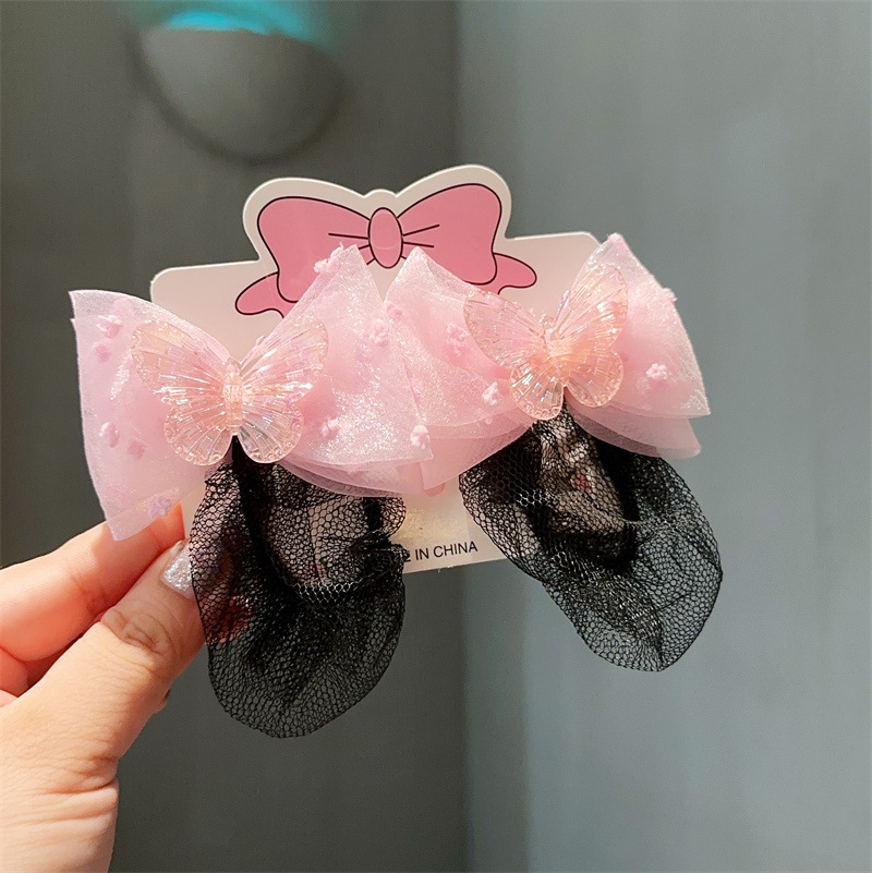 spring clip hair net -- pink butterfly
