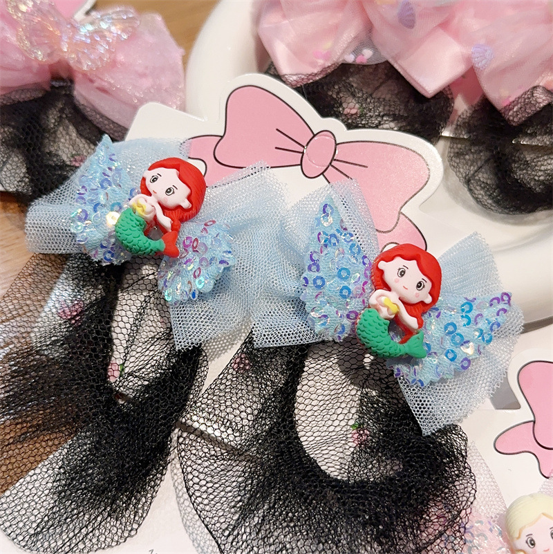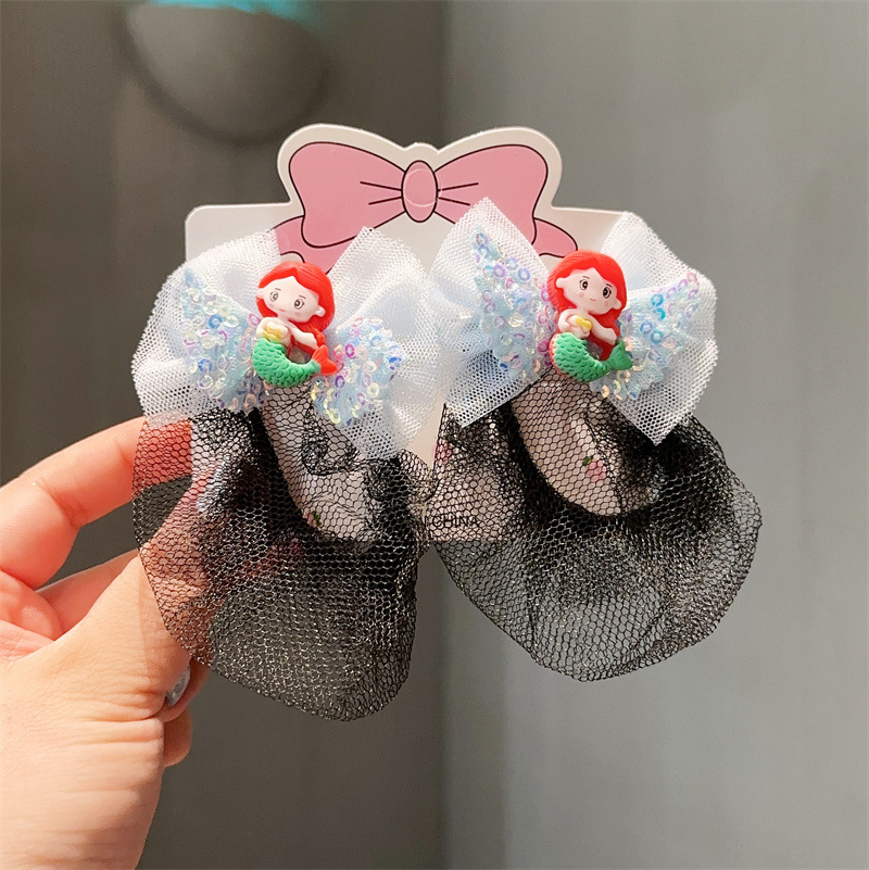 spring clip hair net -- pink mermaid