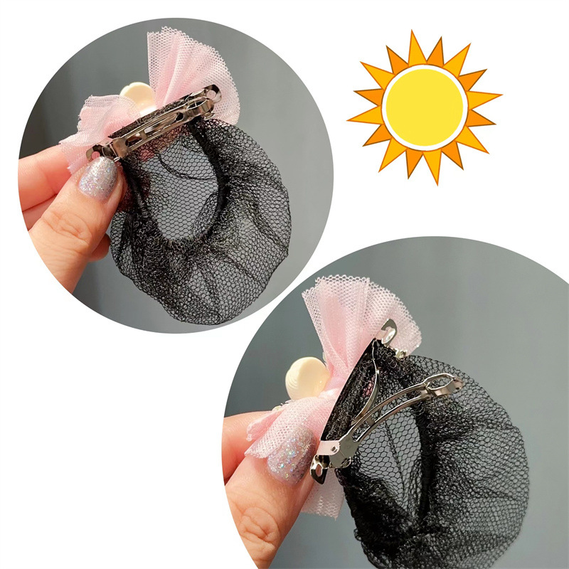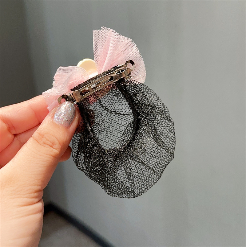 spring clip hair net -- pink round-collar flower