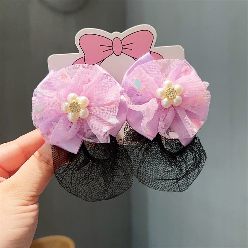 spring clip hair net-purple round flower