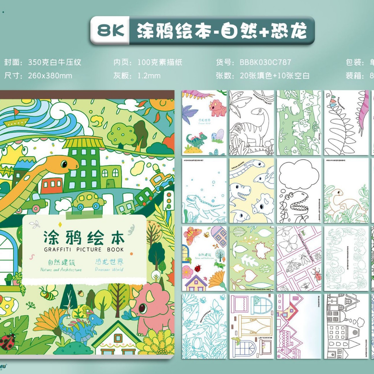 8k color page version nature + dinosaur