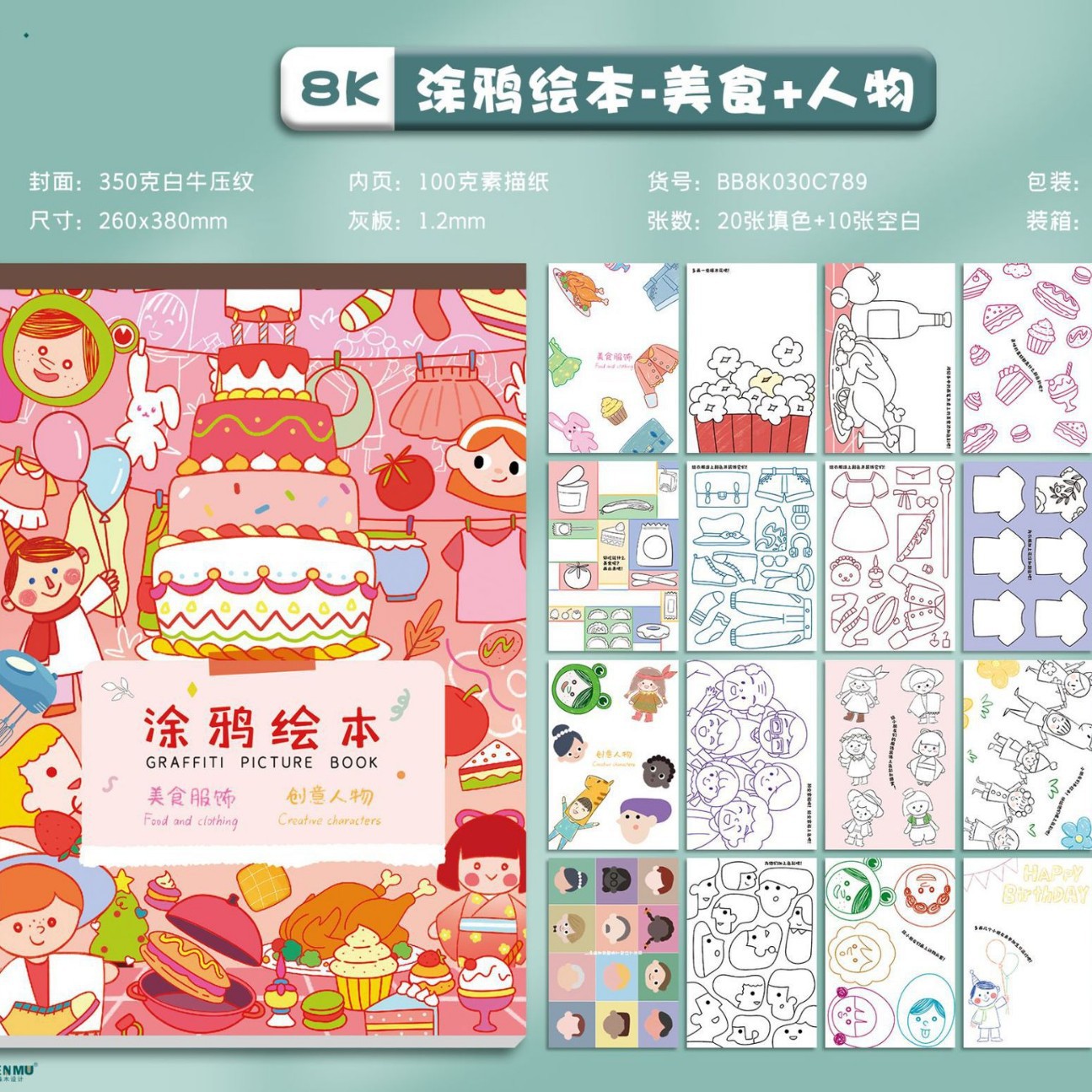 8k color page food + character