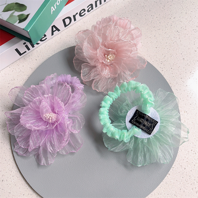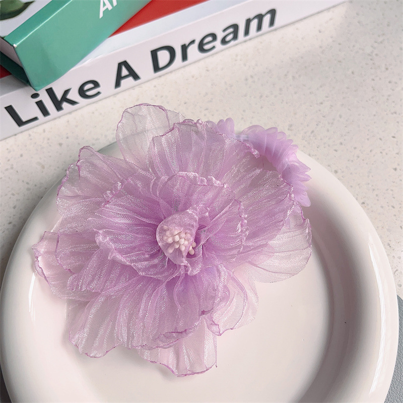 scorched-edge large flower – purple hair tie