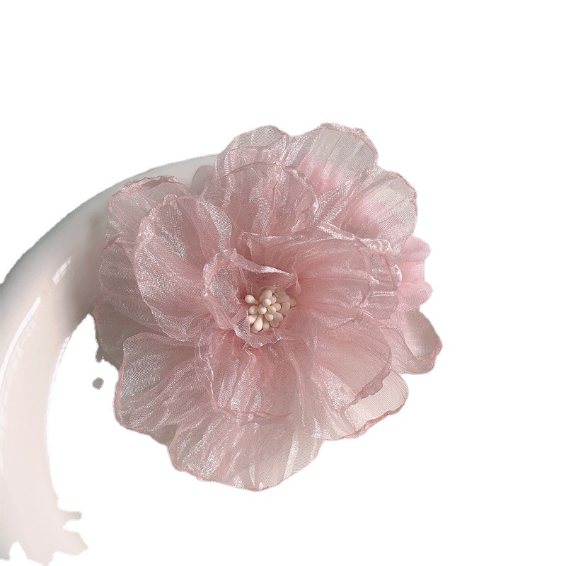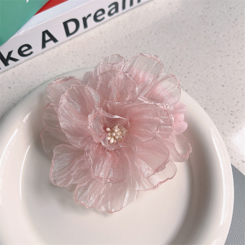 scorched-edge big flower -- pink barrettes