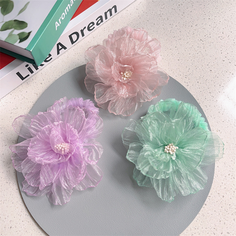 scorched-edge big flower -- green barrettes